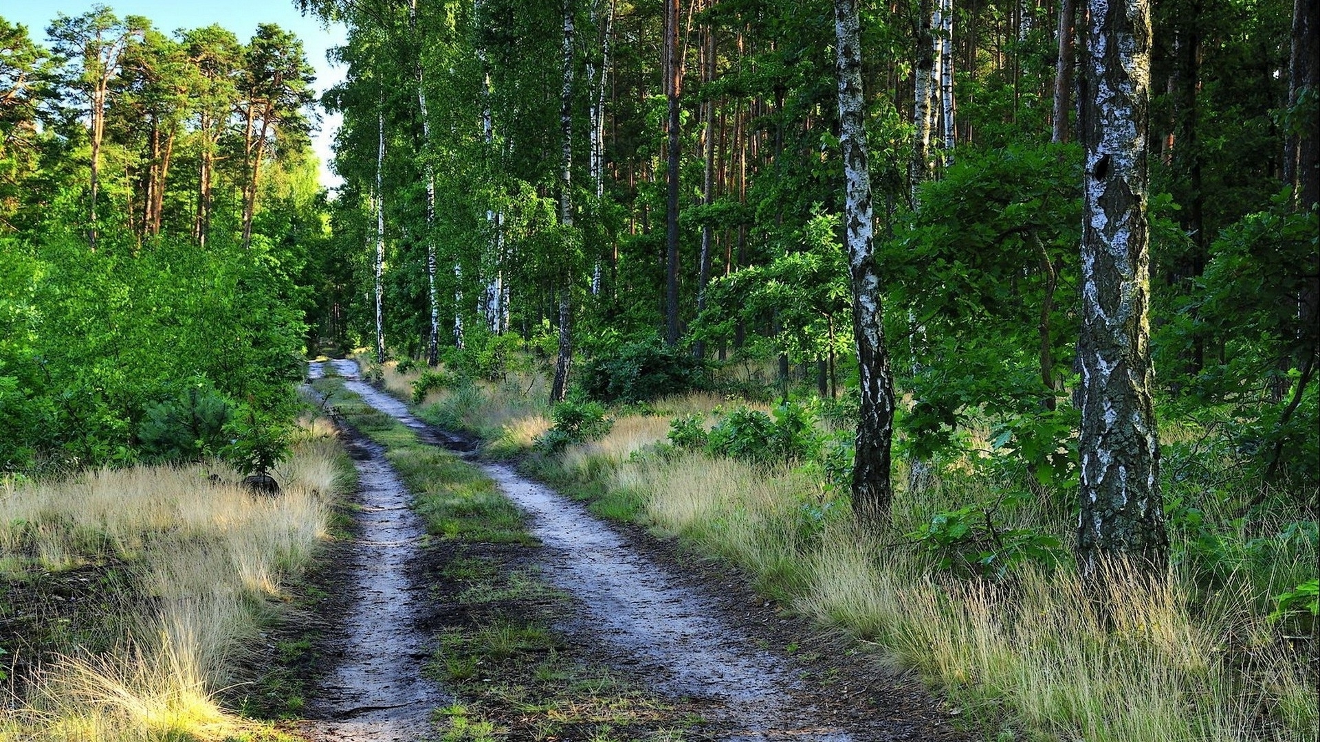 1 张 高清晰绿色白桦林路壁纸