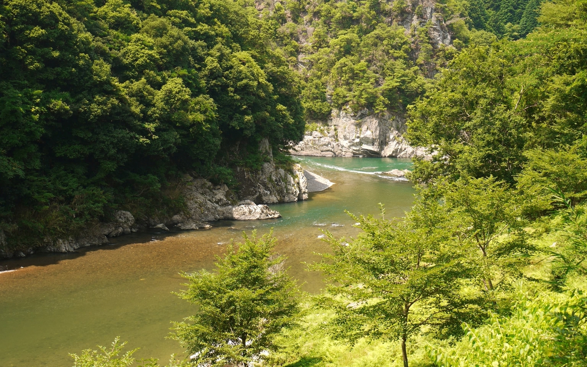1 张 水色河峭壁绿色树