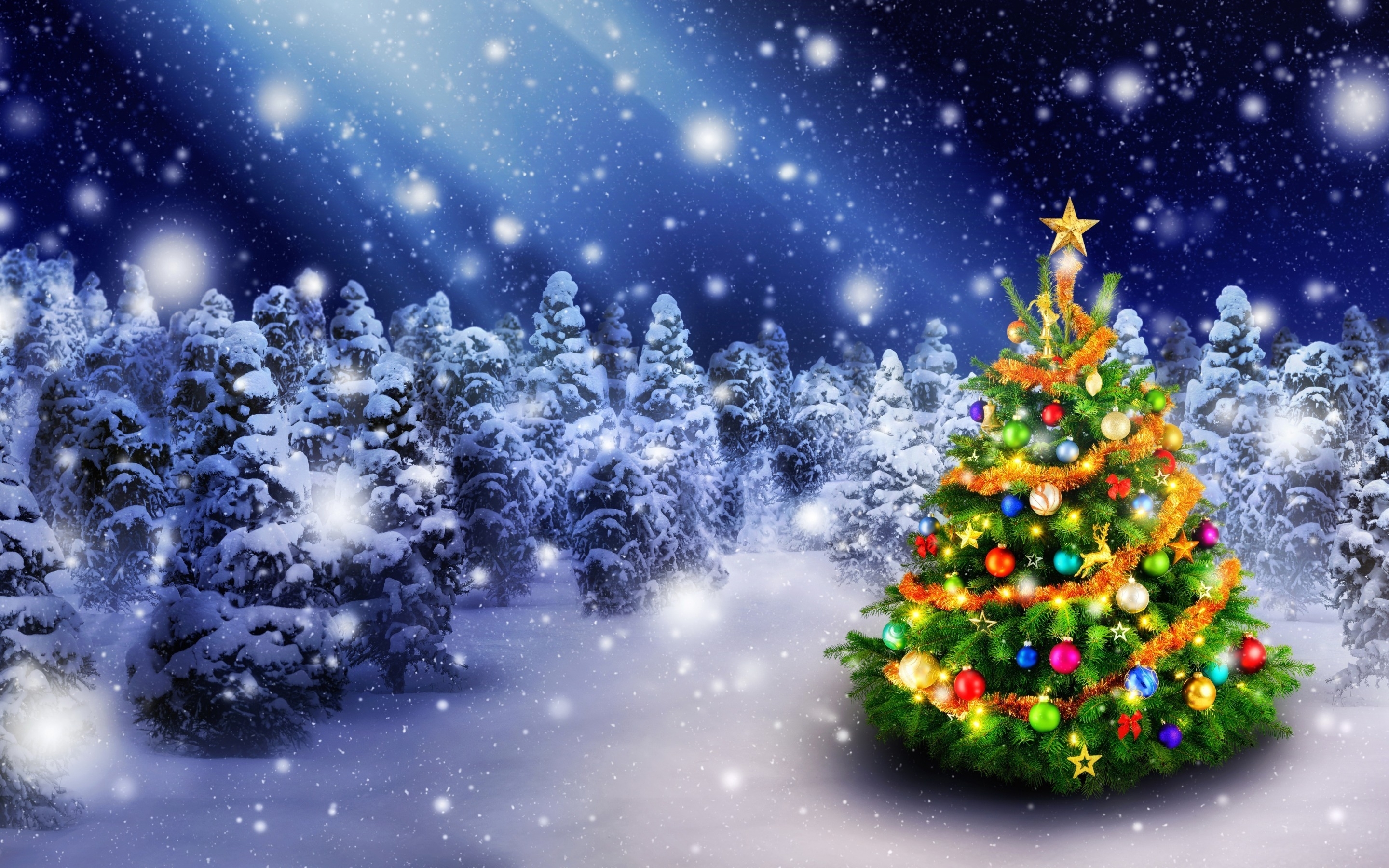 1 张 冬季河边圣诞树夜景图