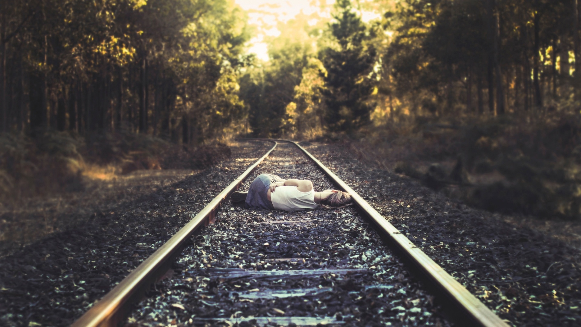 1 张 黄昏中的双轨铁路图
