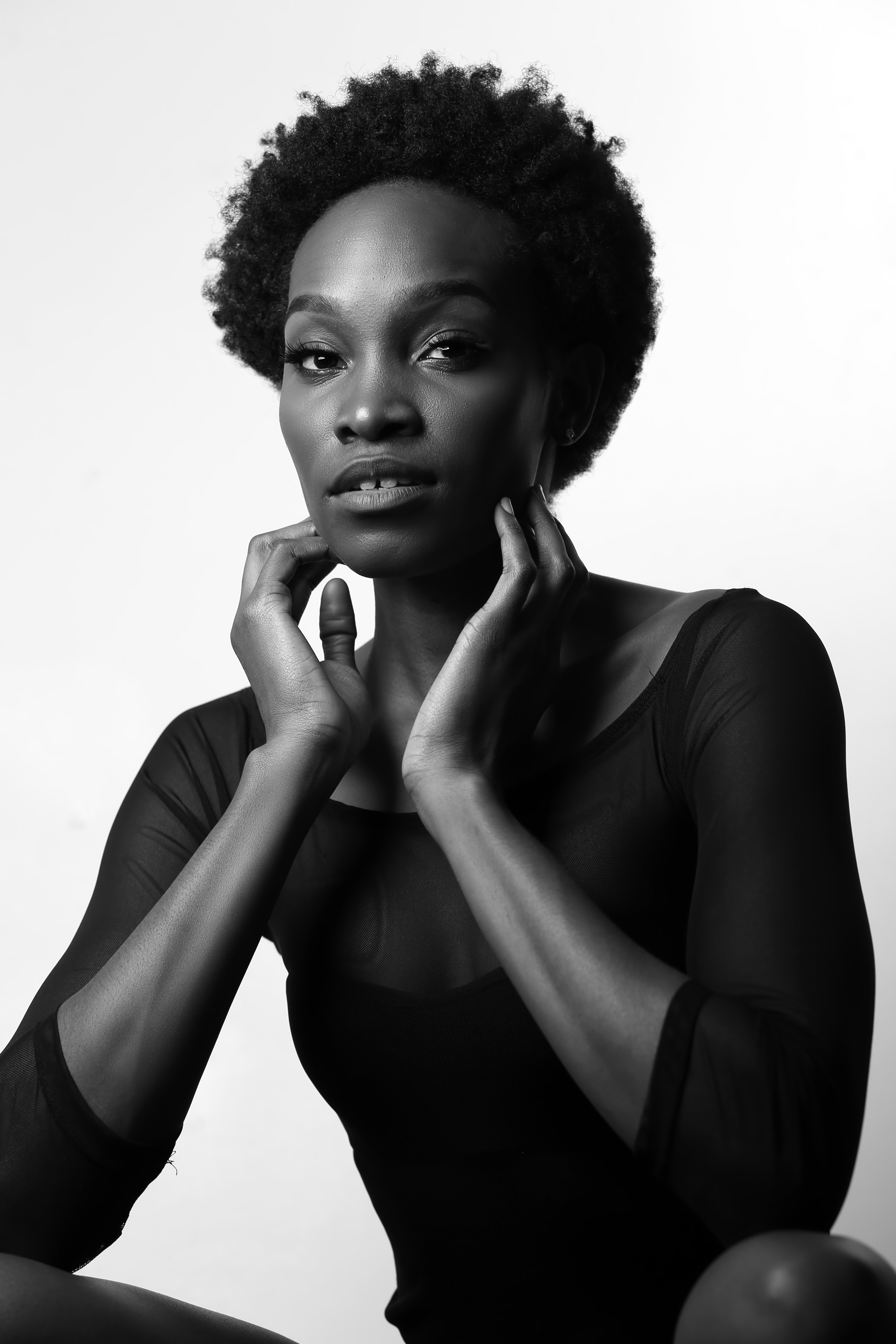1 张 双手撑下巴的非洲女人黑白壁纸