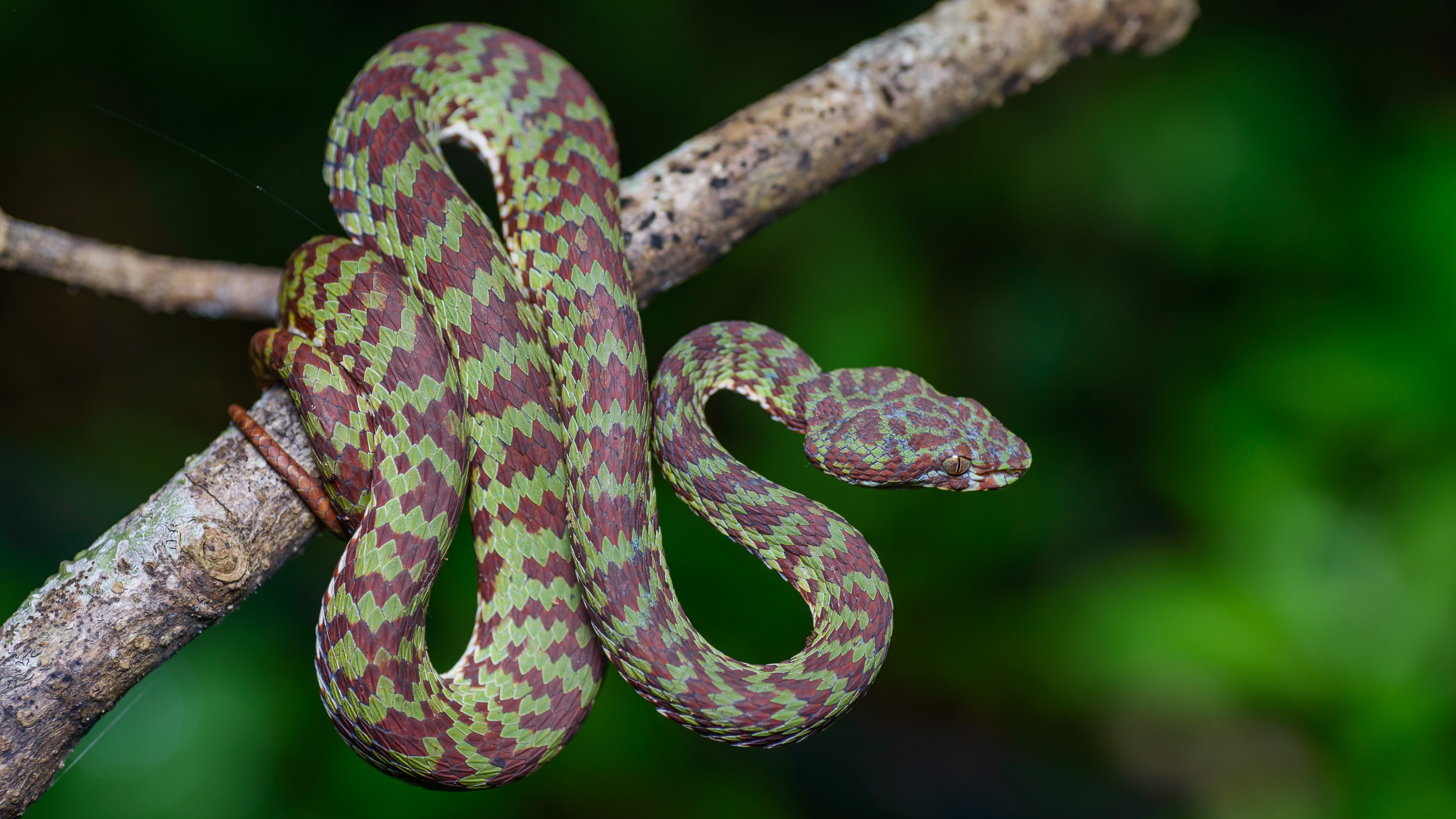 5 张 绿色竹叶青毒蛇微距写真图