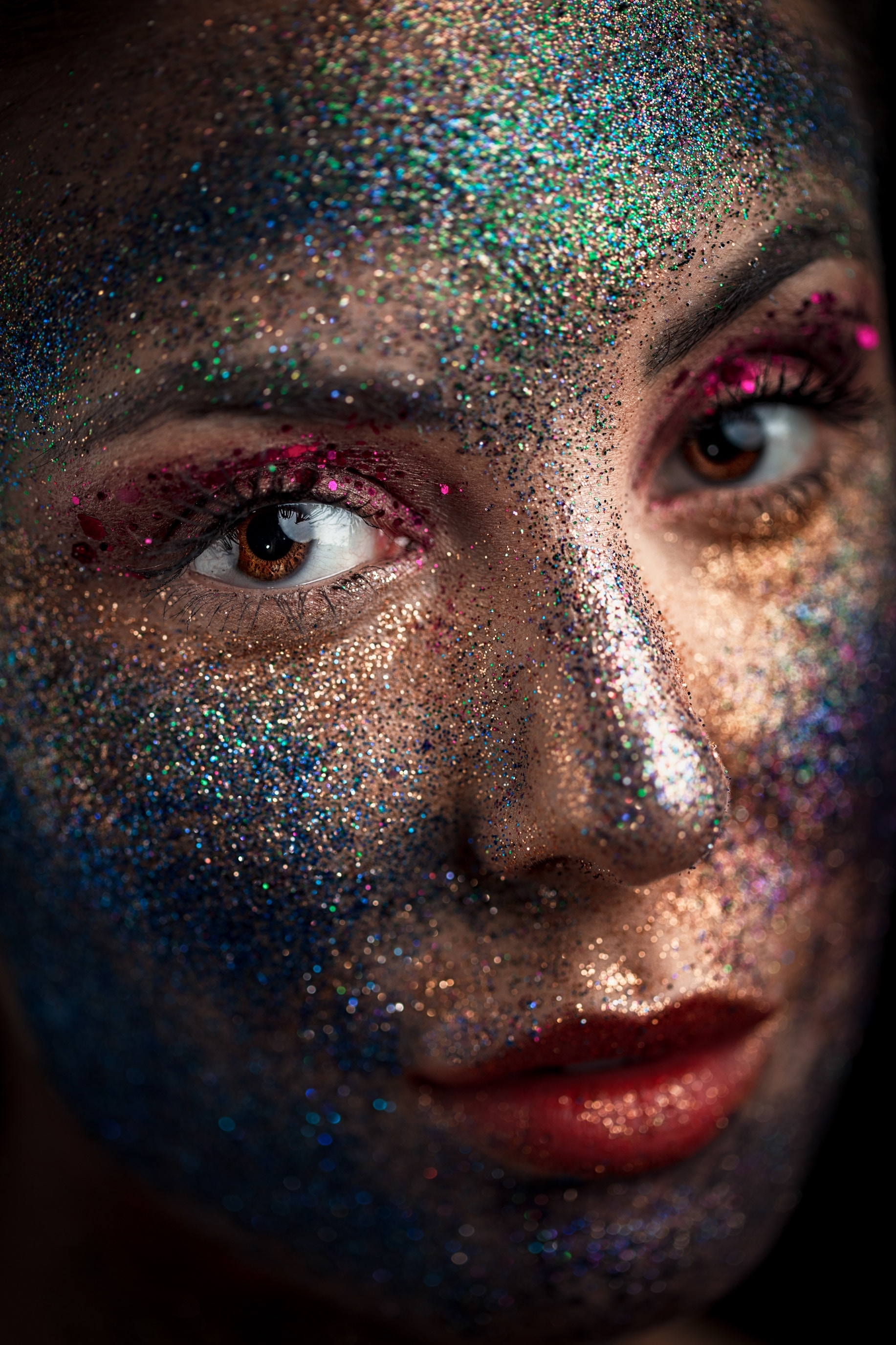 1 张 脸部涂彩色油漆的女子