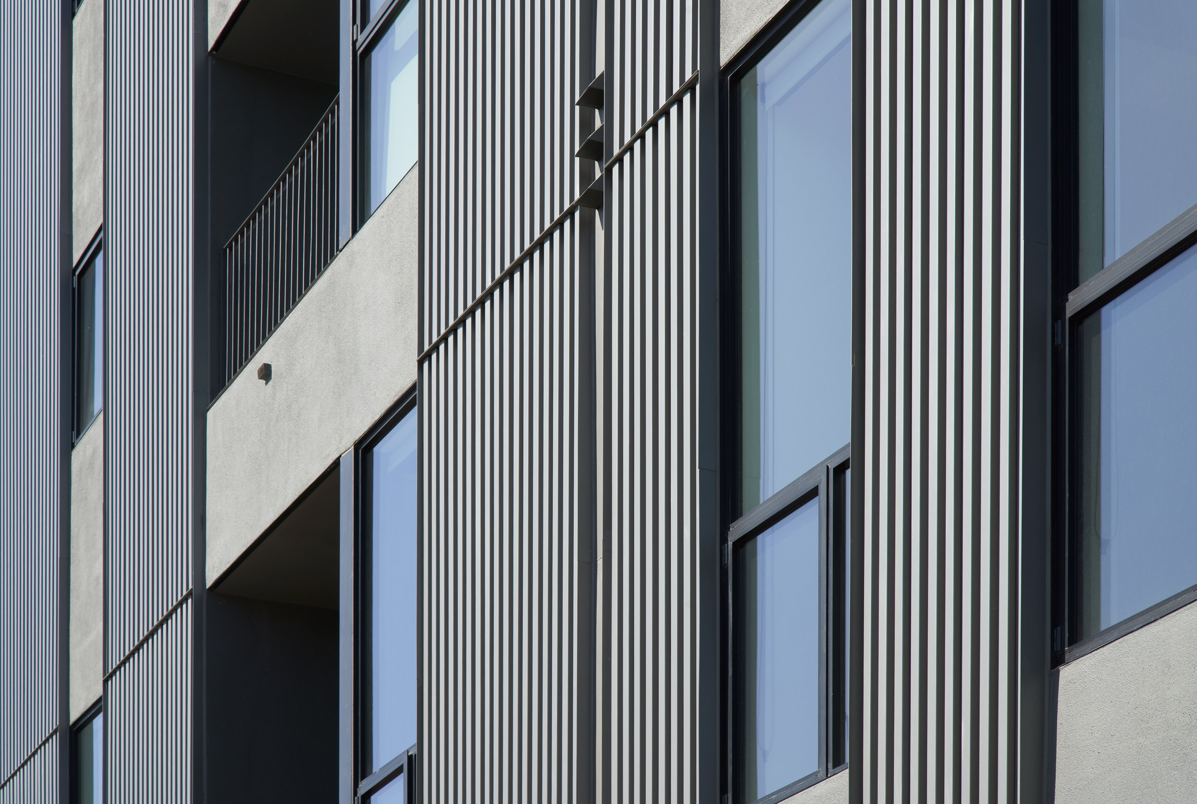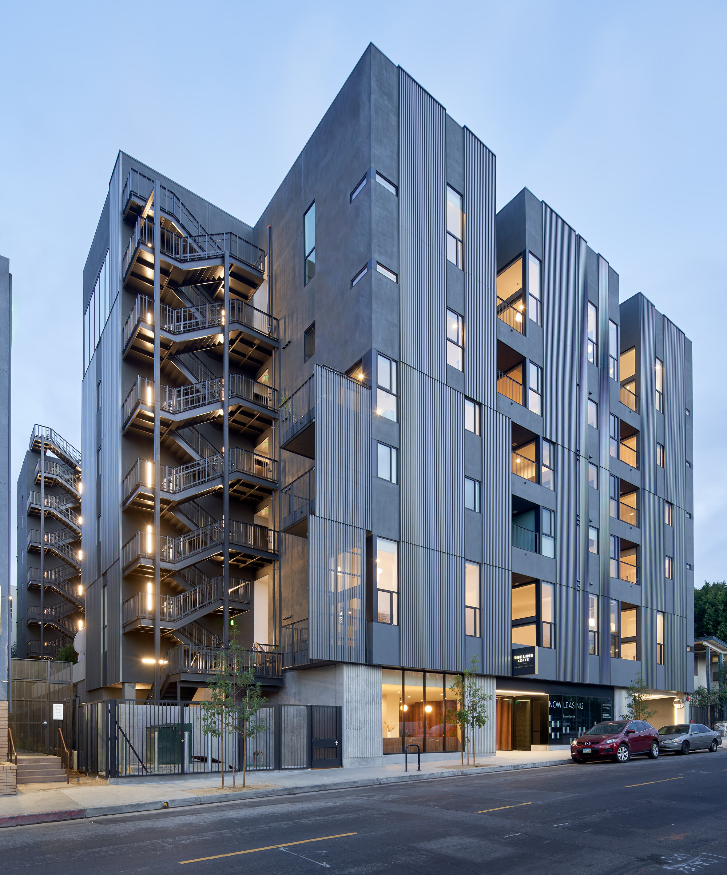 虽然The Line Lofts被称为豪华公寓楼,但该项目存在成本限制,预算限制在重要性方面发挥了作用,在结构方面,混凝土用于地面,而预制木框架用于上层。主立面采用波纹金属和灰色灰泥包裹,交替使用,以增强建筑的外观。