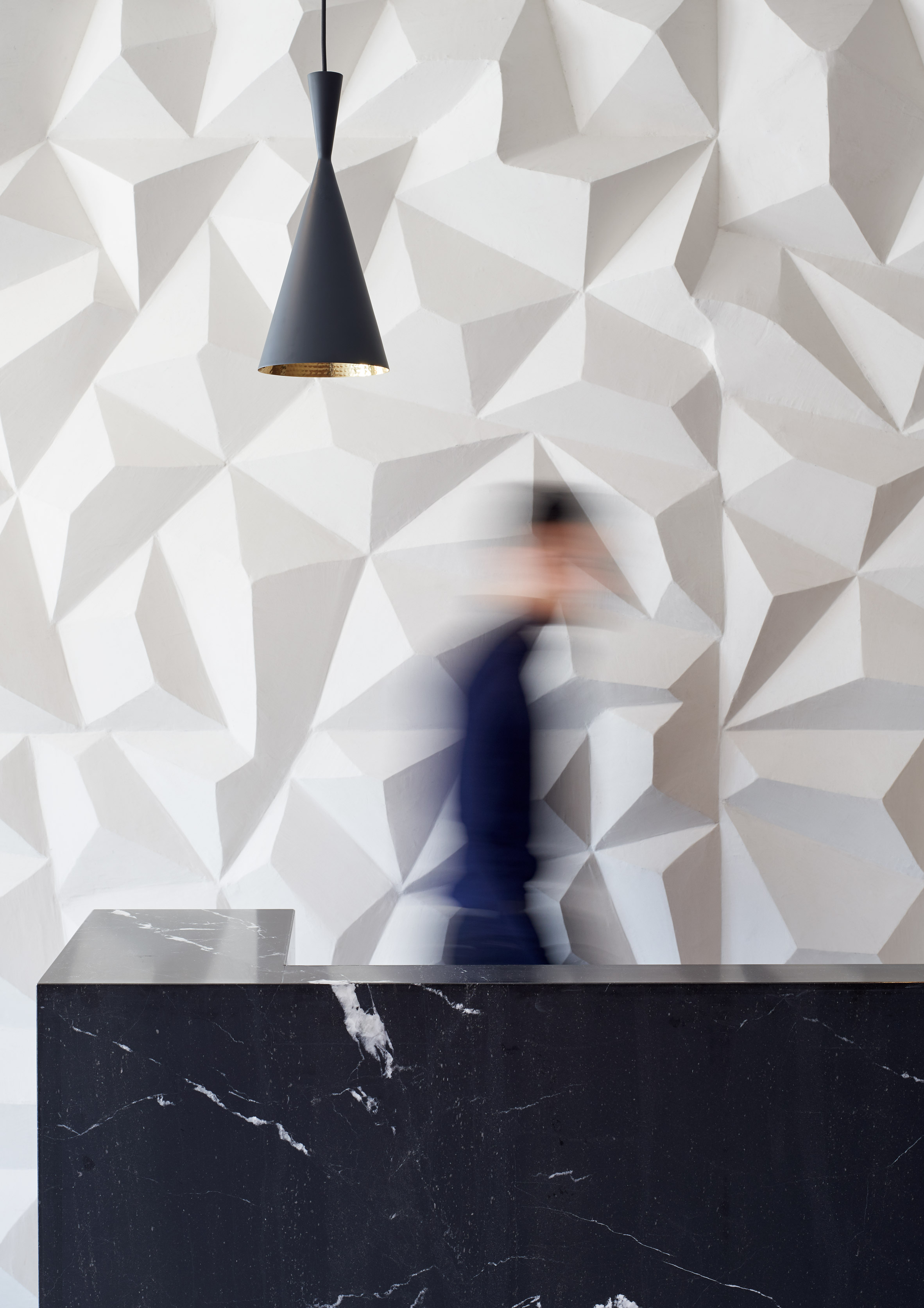 他们创造了直线形式,围绕着酒店南侧的露天庭院布置成曲线。该团队并没有整合一个连接所有楼层的楼梯间,而是在整个计划中穿插楼梯。一楼设有1,100平方英尺(102平方米)的零售空间