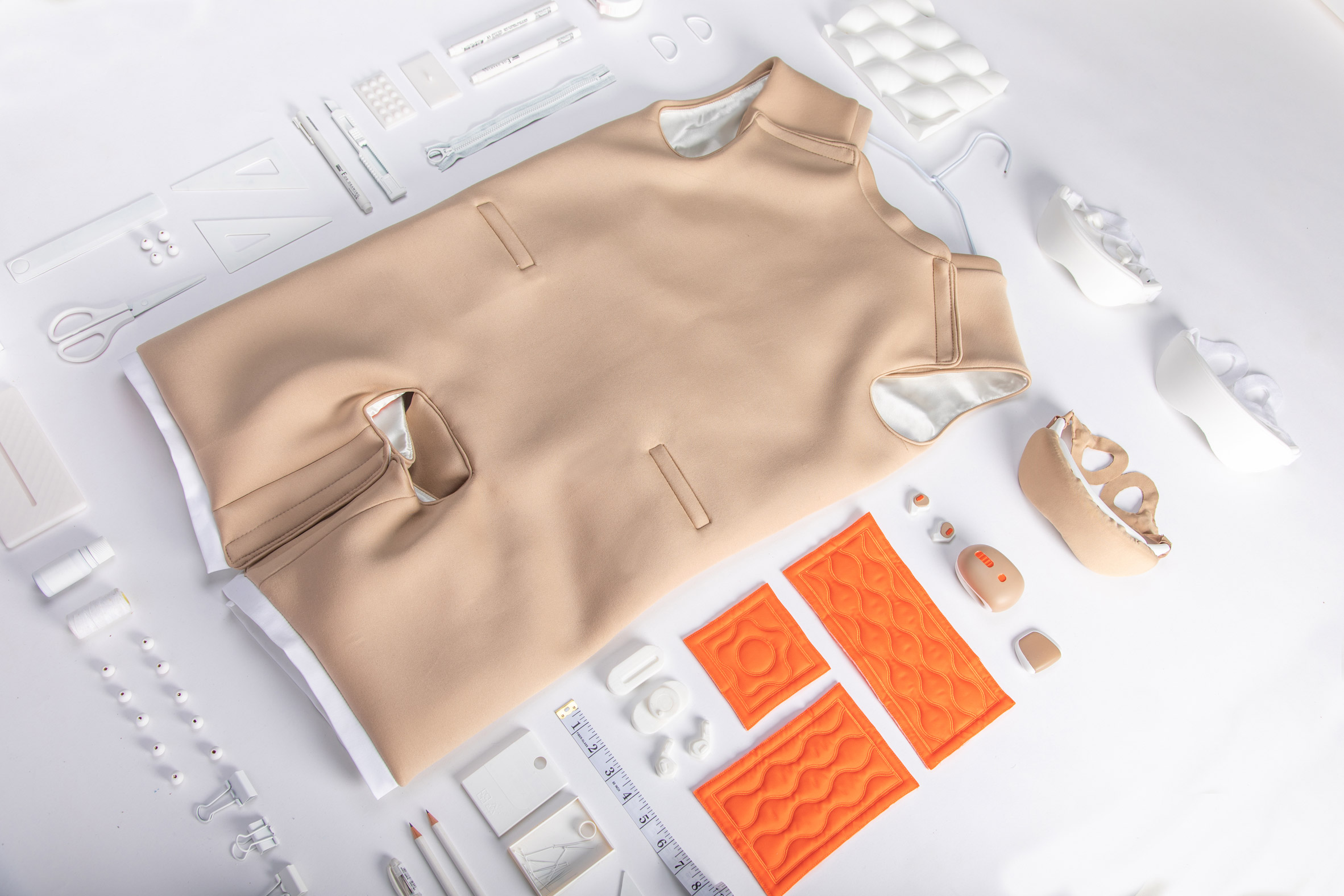 Ripple只需要护理人员帮助用户穿上和取下产品,在使用时给予他们完全的隐私,这款连体衣采用加热的充气气垫,位于身体的典型敏感区域,如胸部和大腿。这些逐渐膨胀,以对模拟人类触觉的某些身体部位施加压力。