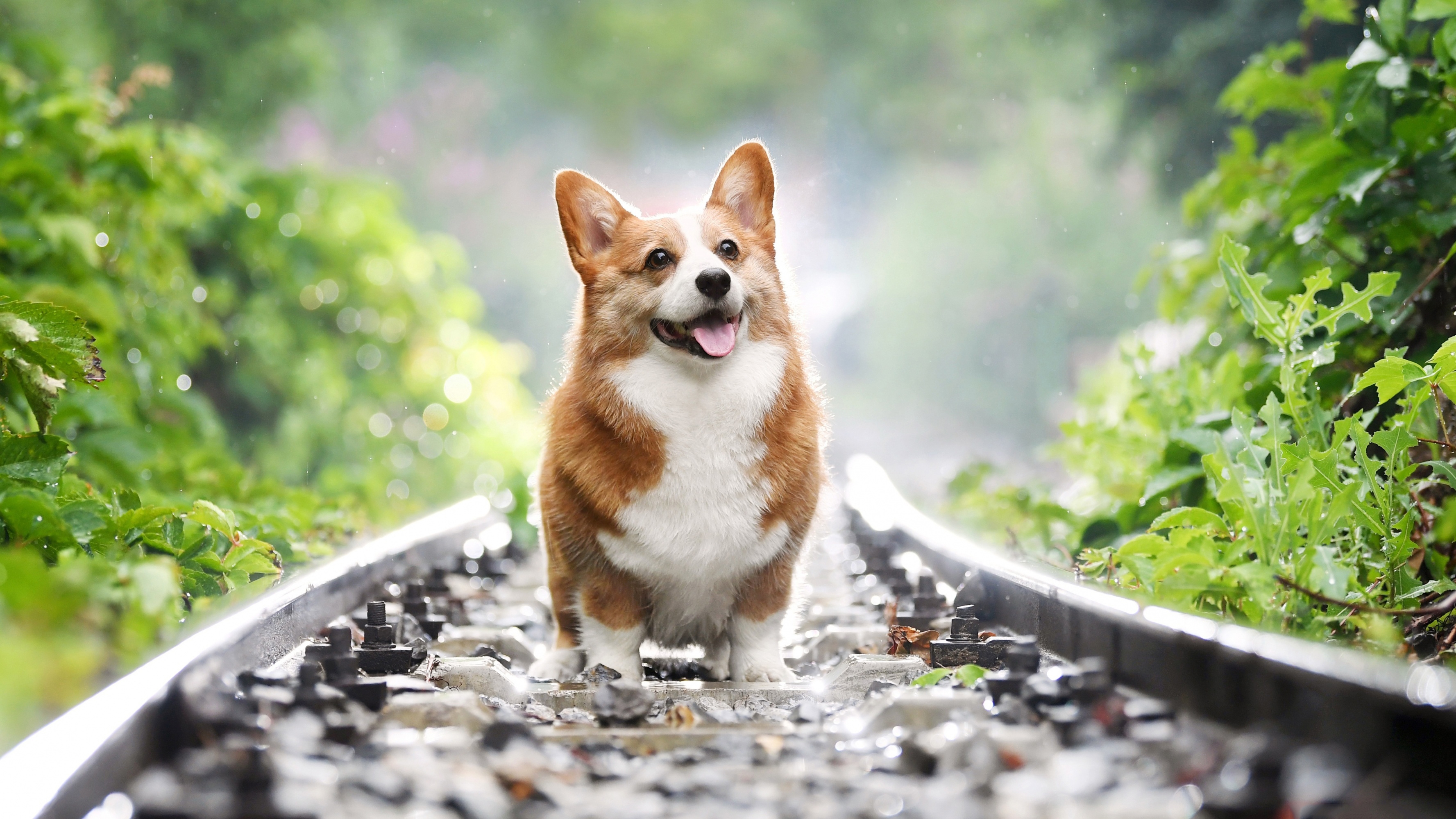 1 张 铁轨上可爱的柯基犬图片