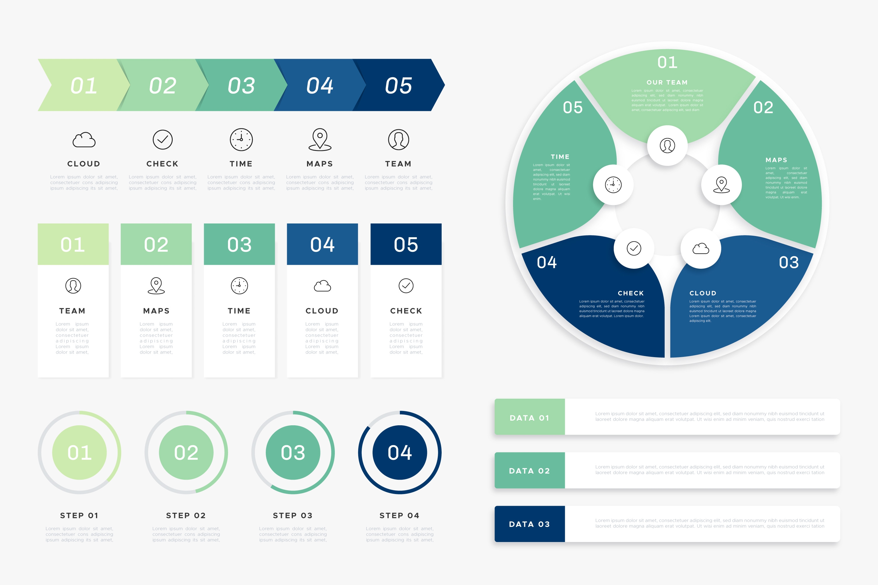 1 张 五款多彩圆形数字步骤信息素材
