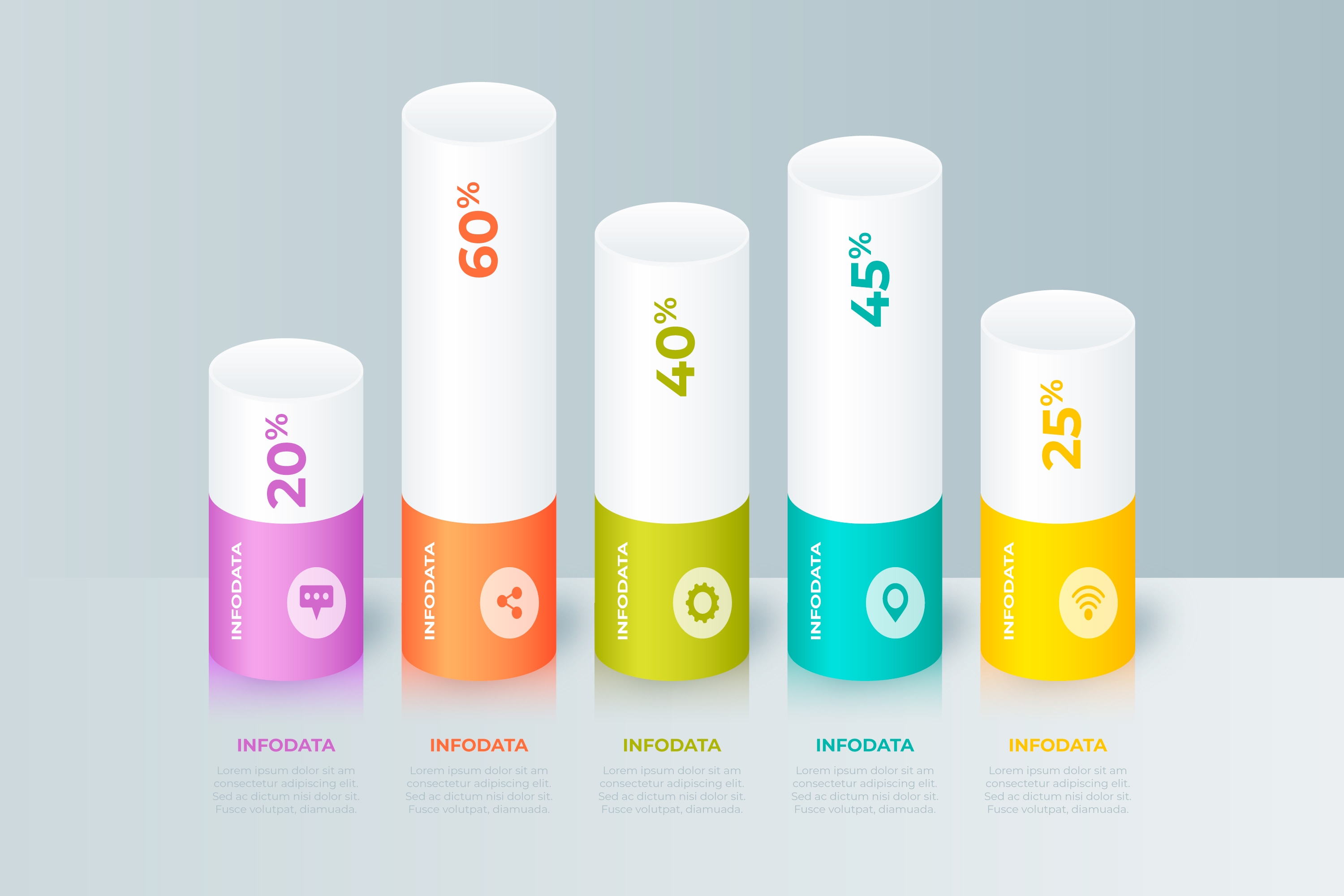 1 张 扁平化多彩渐变色卡百分比信息图表