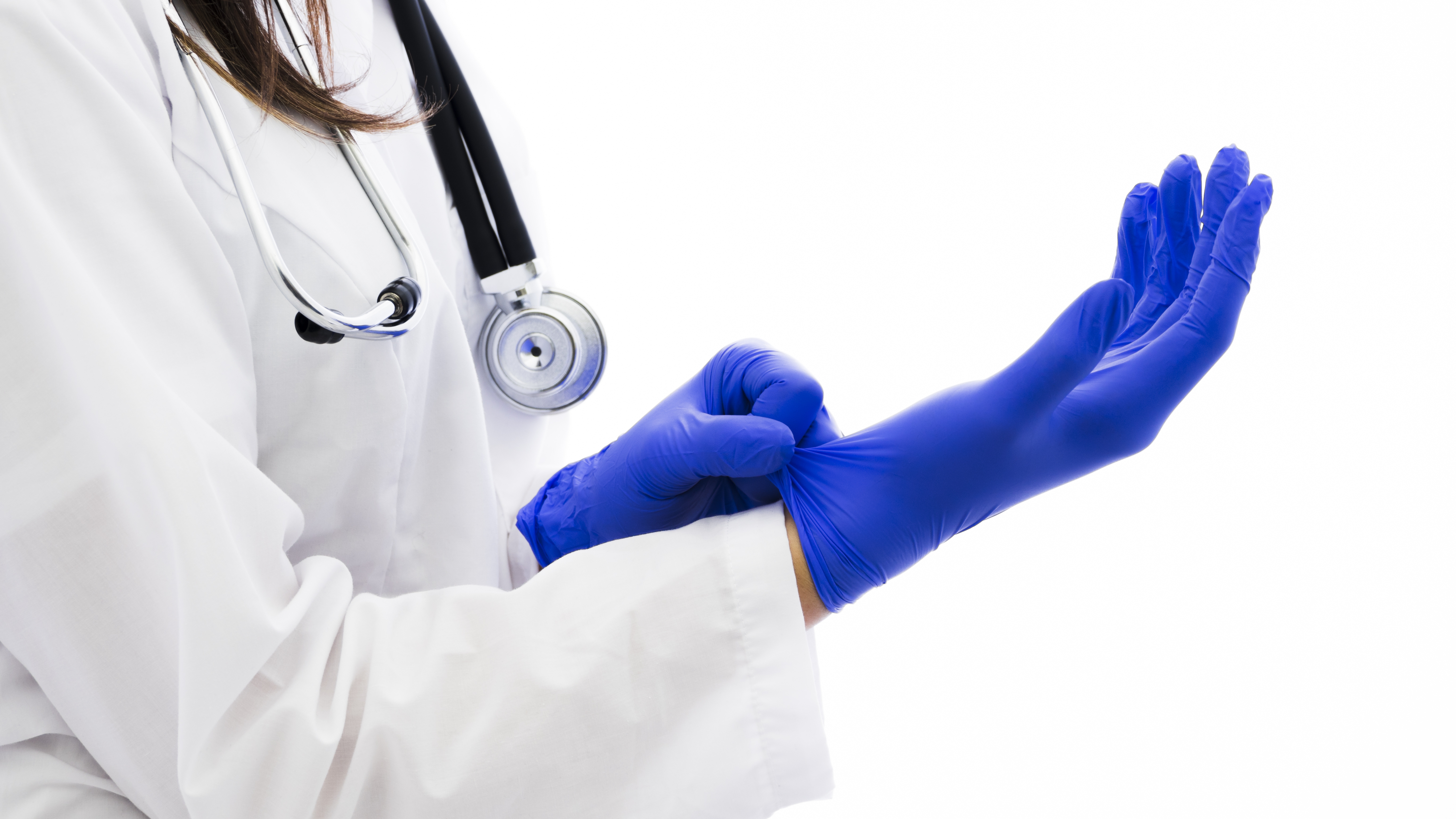 1 张 戴蓝色手套的女医生
