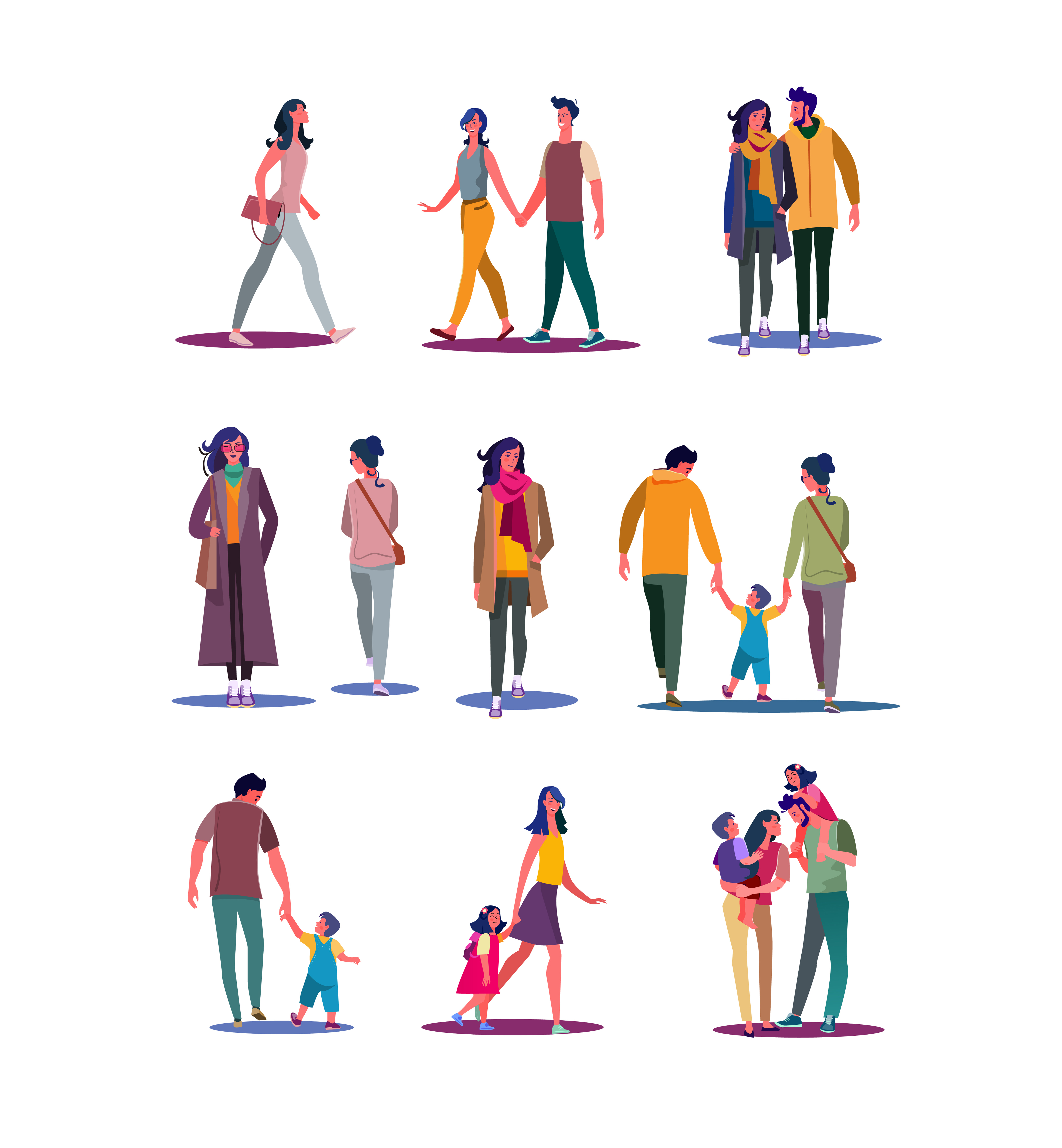 1 张 幸福甜蜜的卡通家人步行者素材