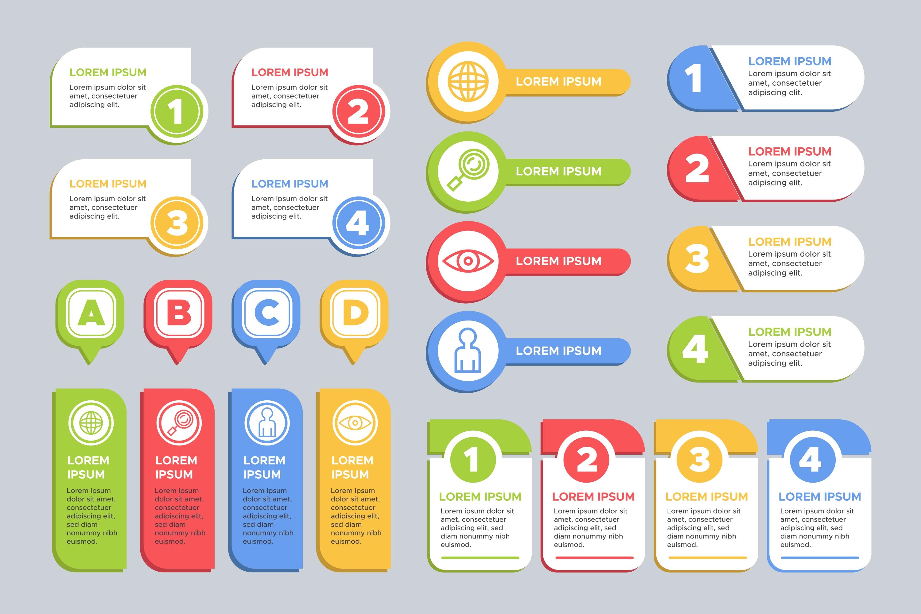 1 张 五款多彩圆形数字步骤信息素材