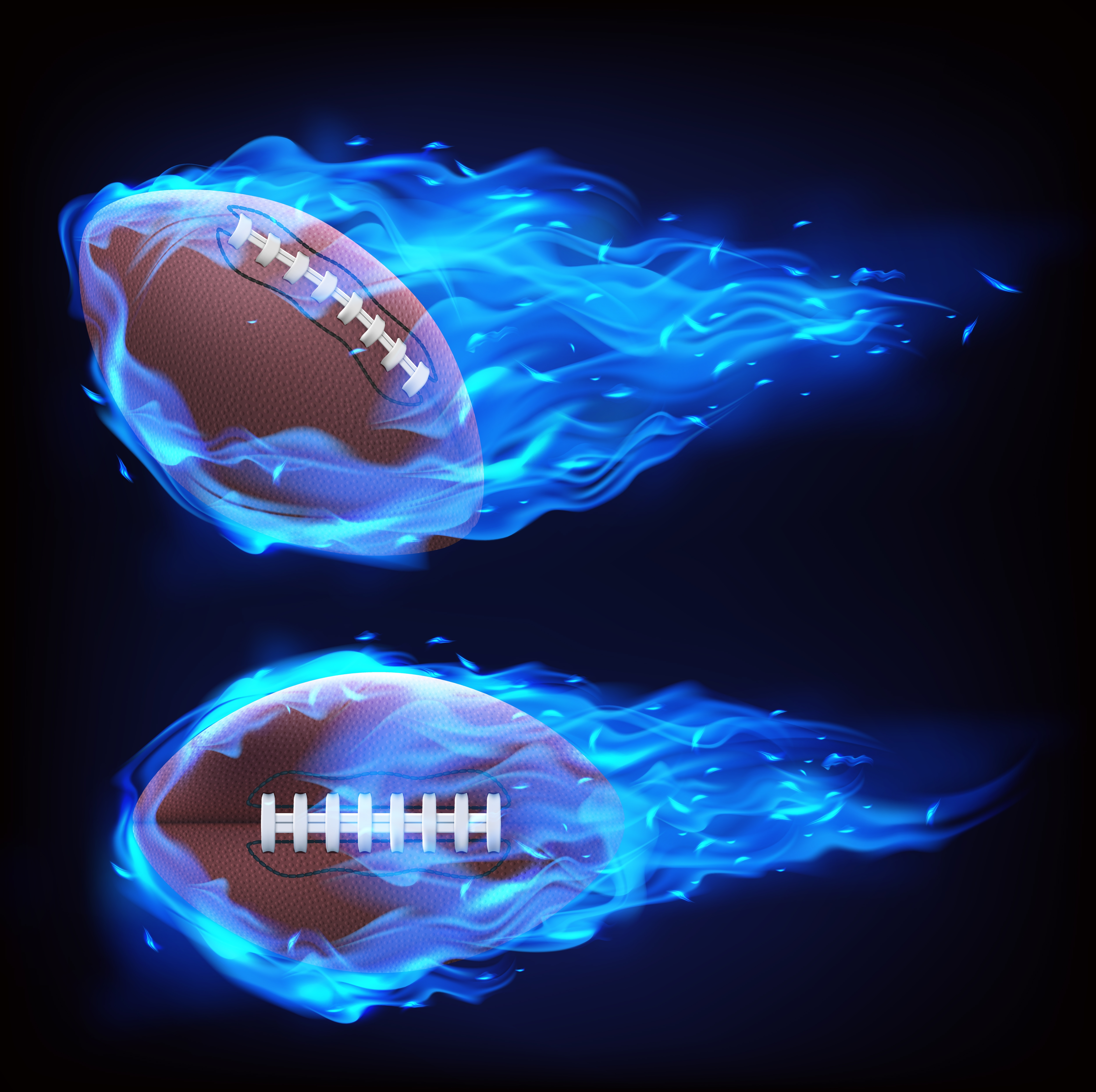 1 张 蓝色火焰包裹飞行的橄榄球