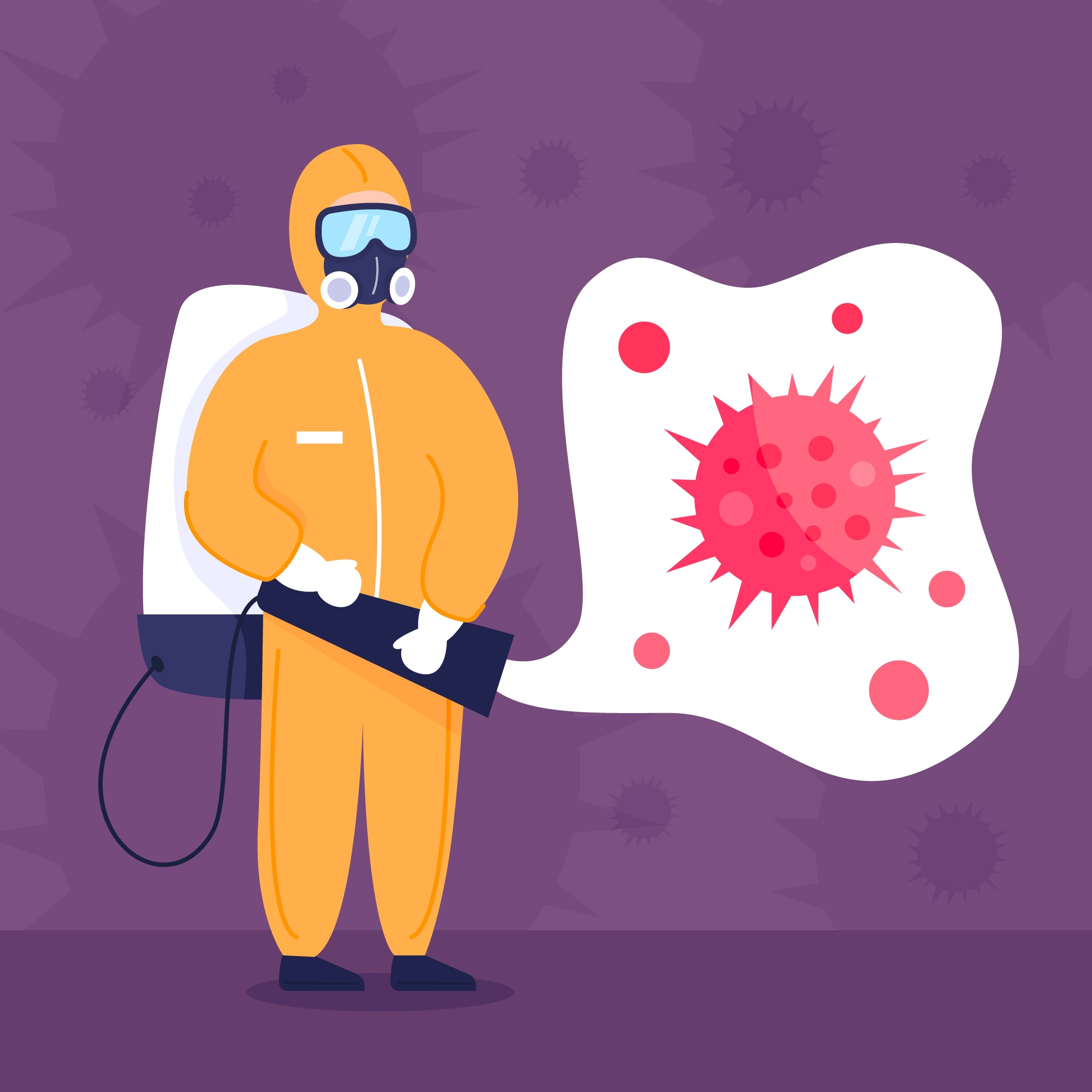1 张 消毒人员喷洒消毒水的卡通素材图