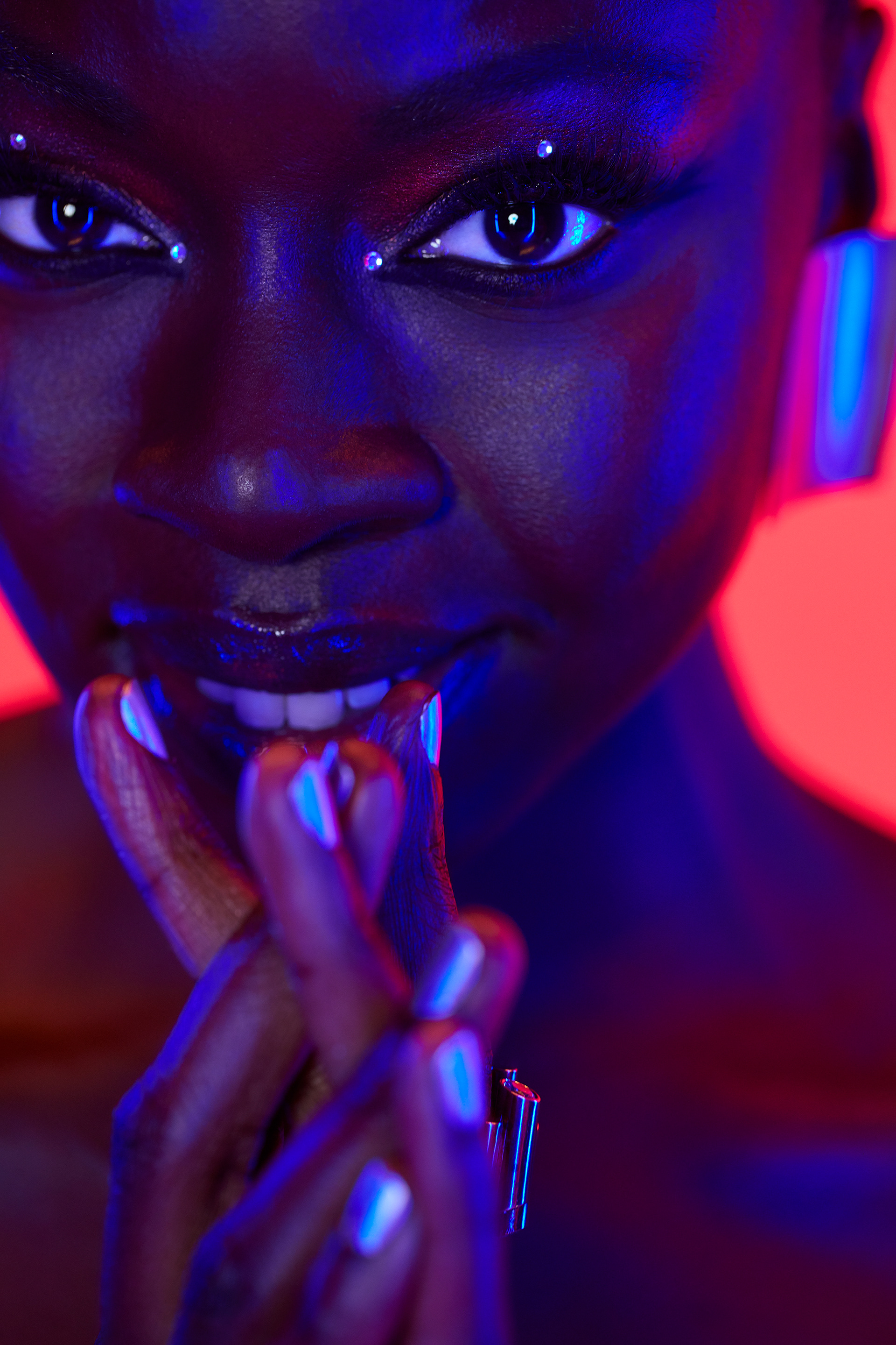 1 张 涂满红色的彩妆女郎