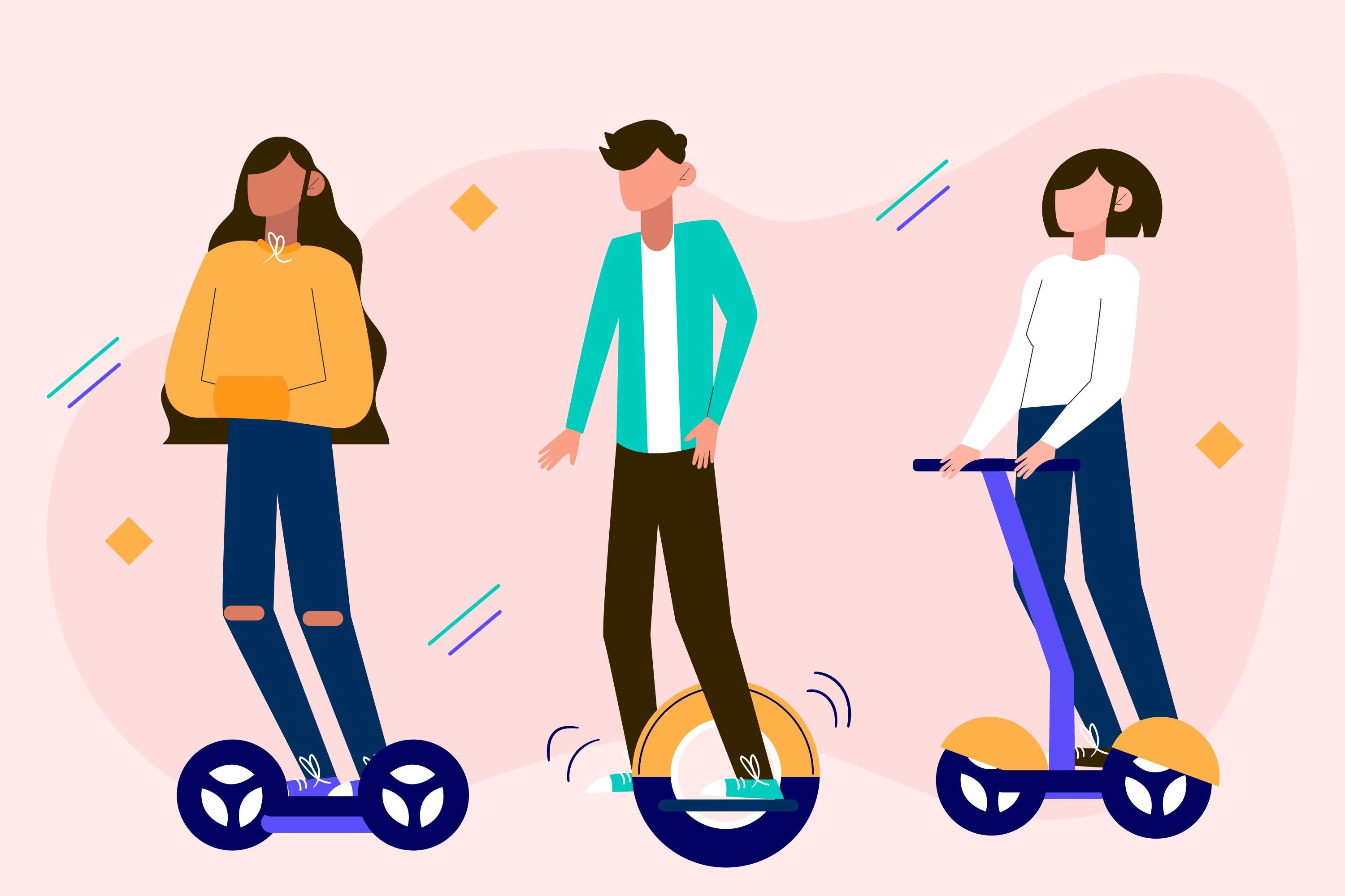 1 张 骑电动滑轮的卡通人