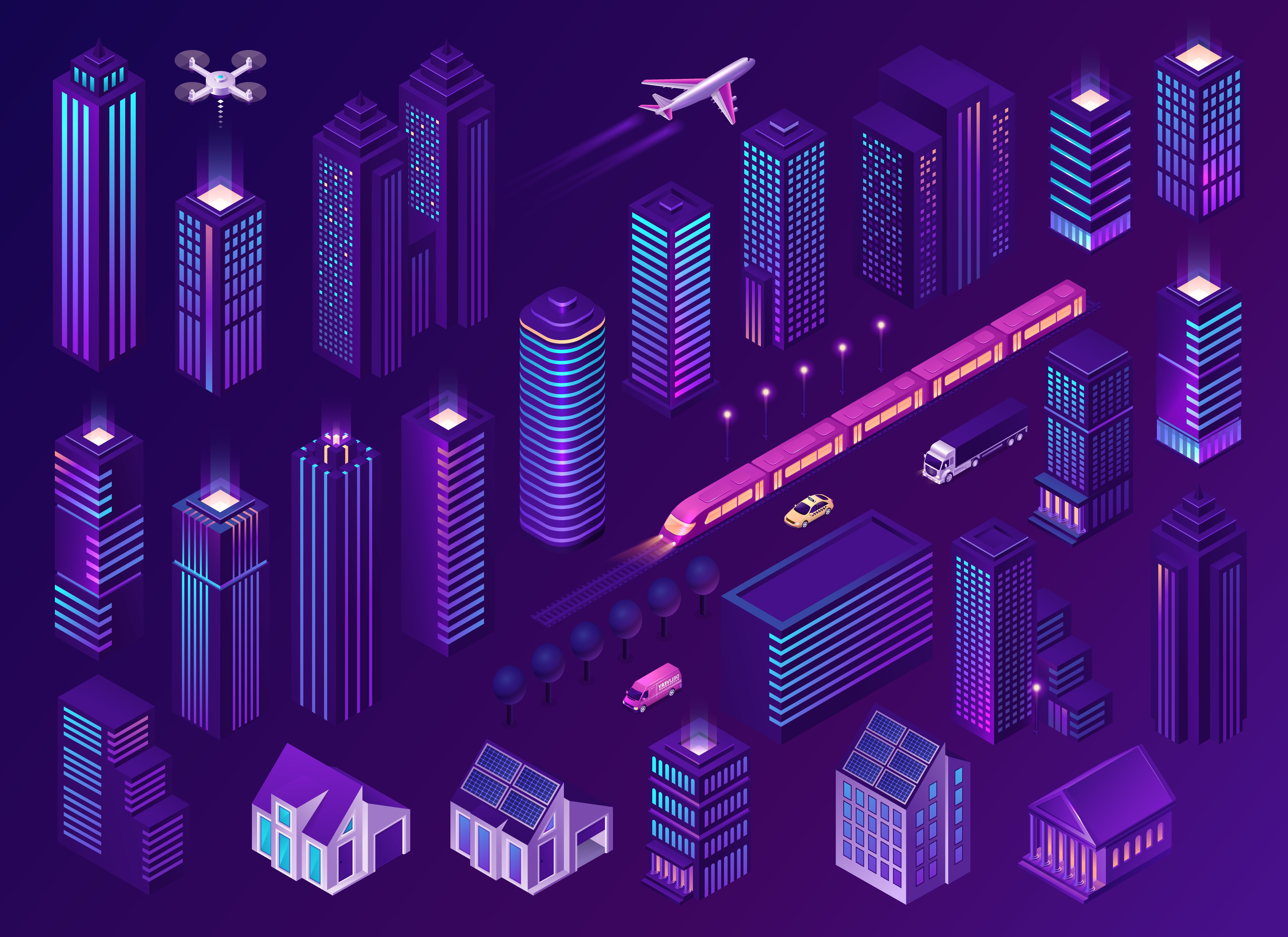 1 张 紫色城市发展素材