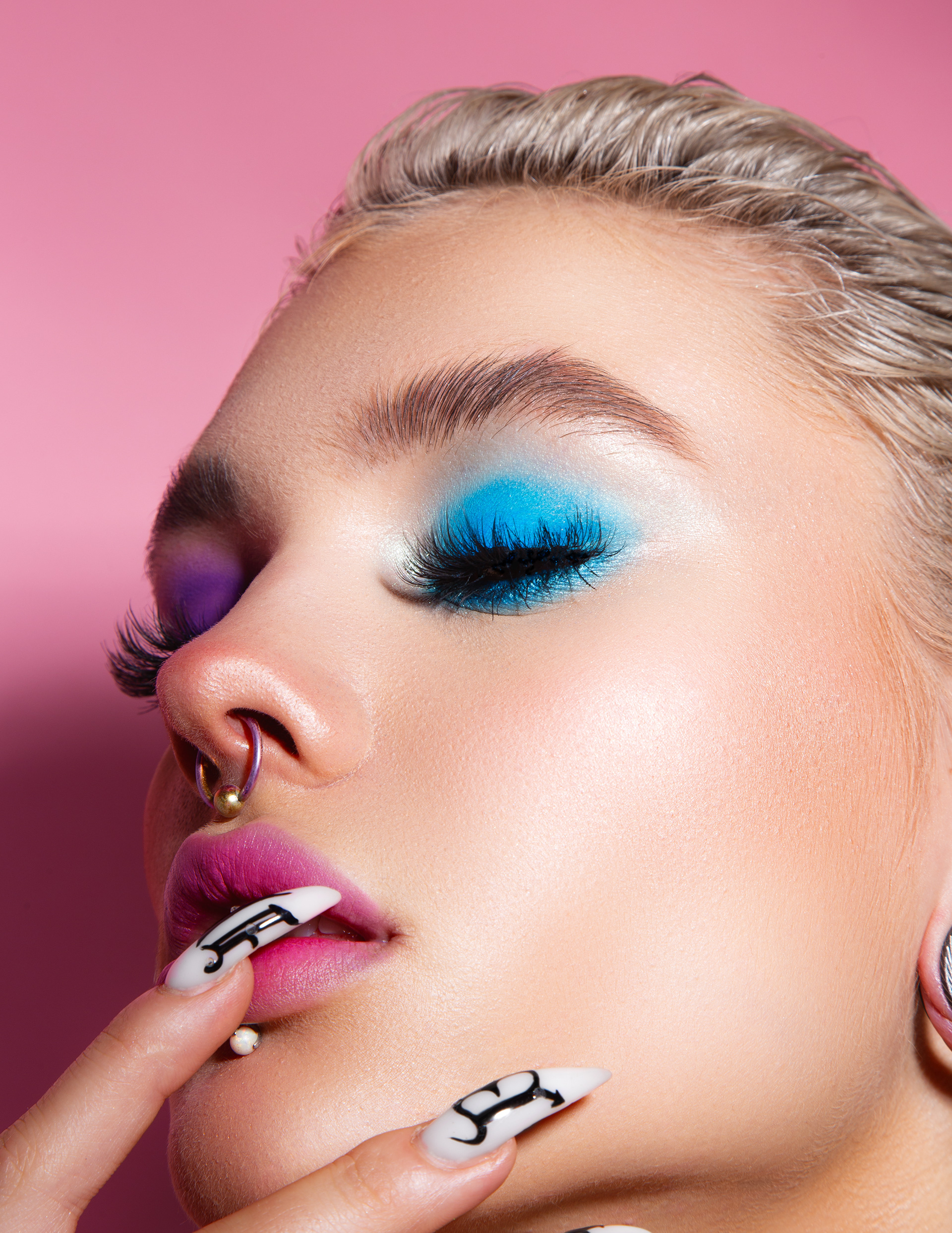 1 张 蓝色背景前的鼻环男子