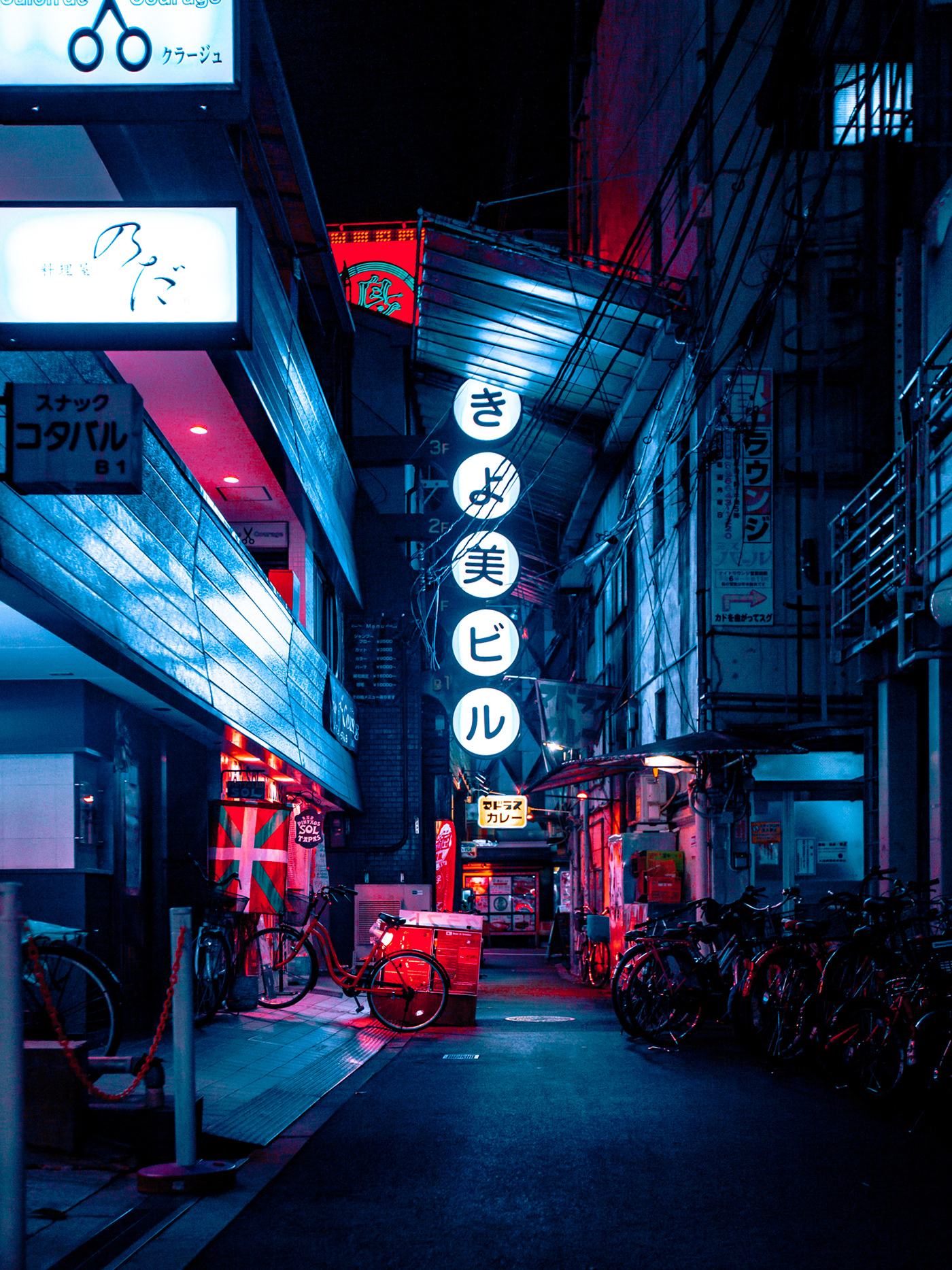 1 张 蓝色韩风小巷街头夜景