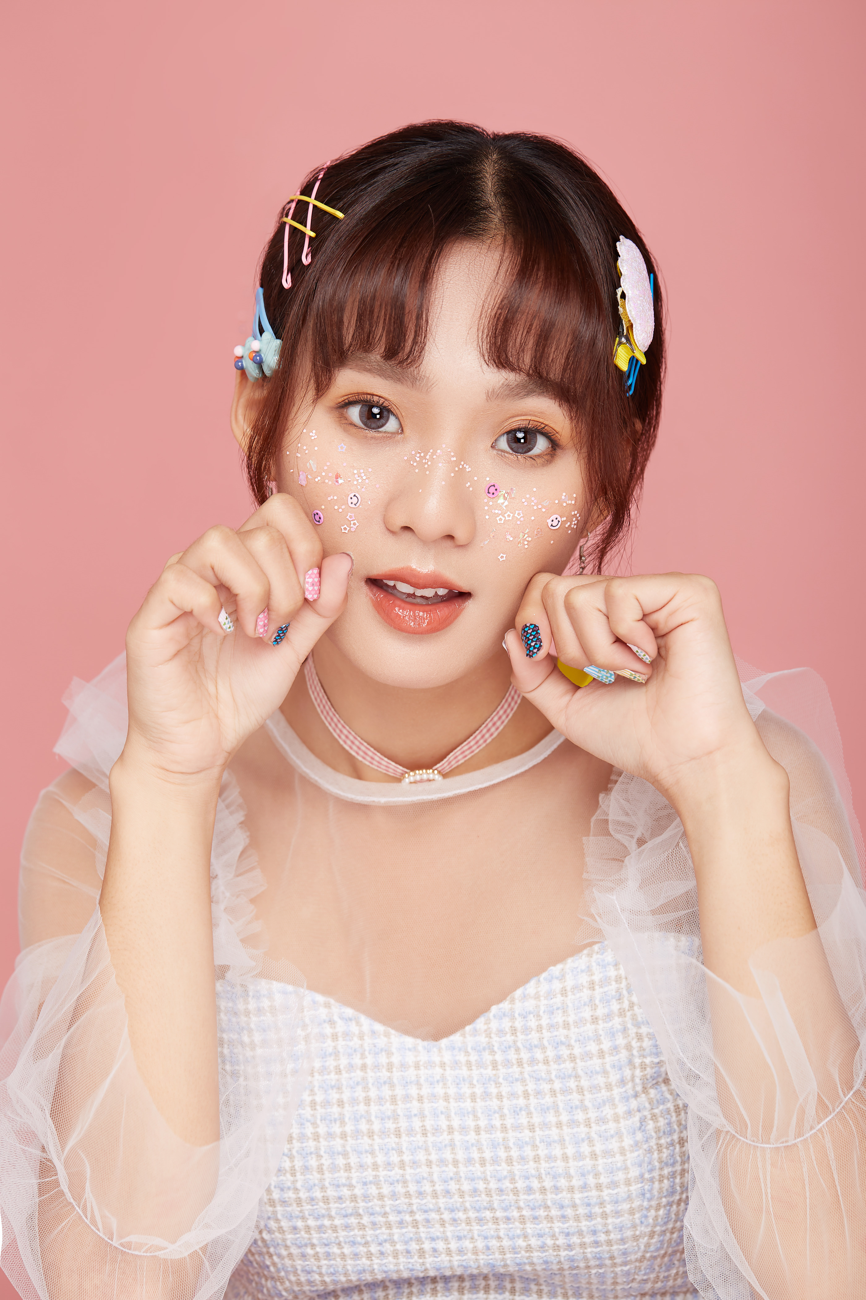 2 张 脸部涂鸦的亚洲黑发女人