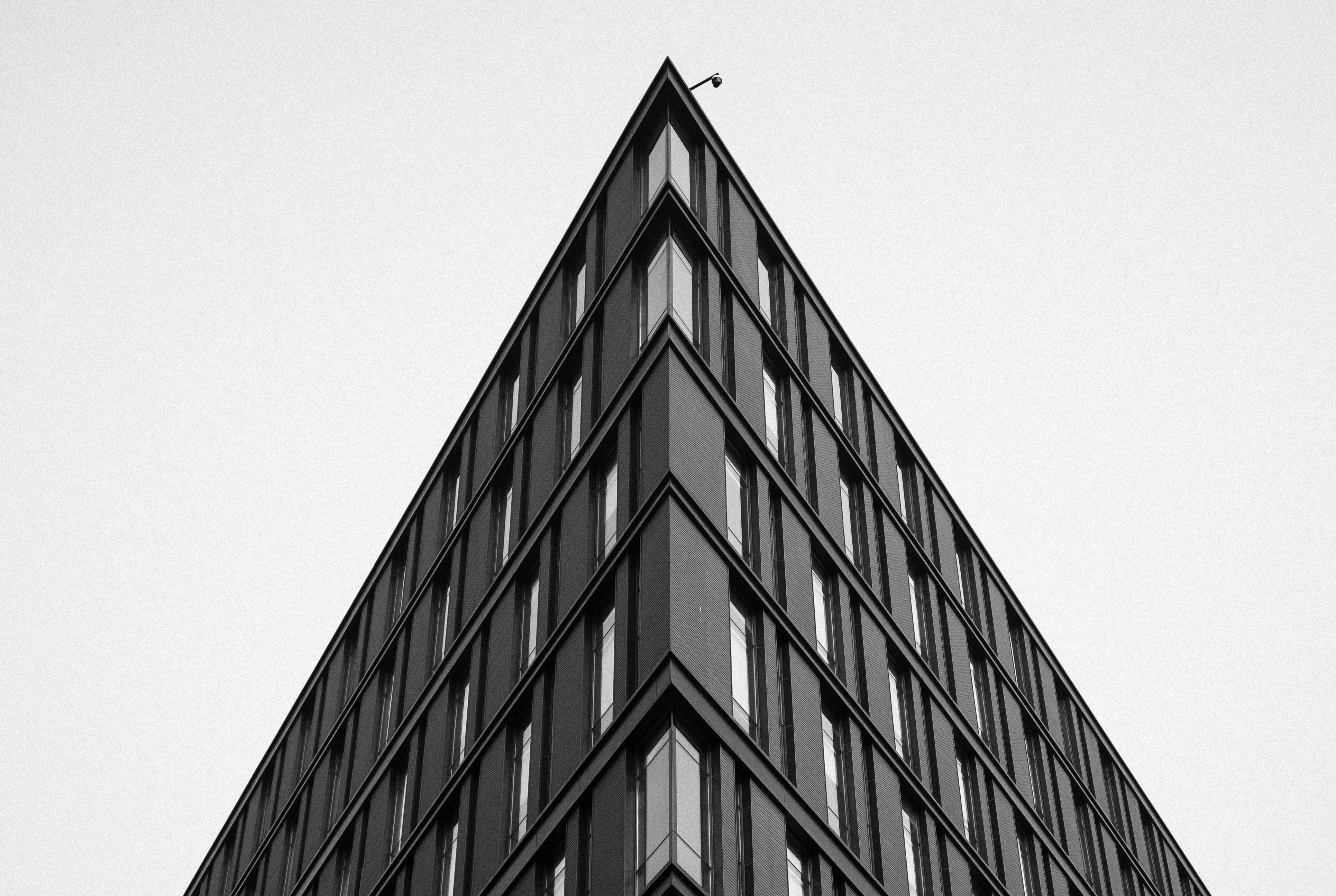 1 张 仰拍的尖角建筑黑白图片