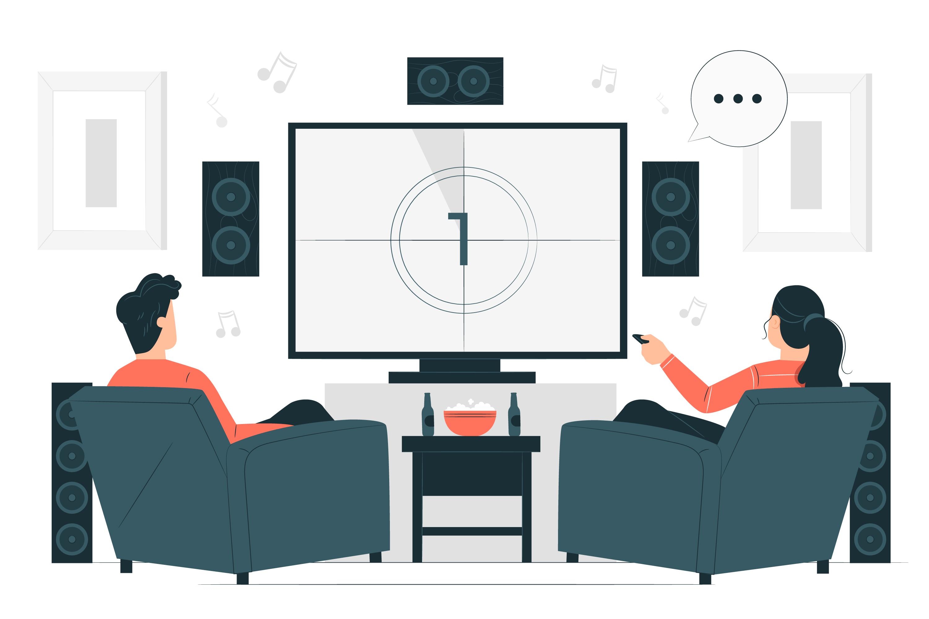 1 张 在家欣赏家庭影院的卡通情侣