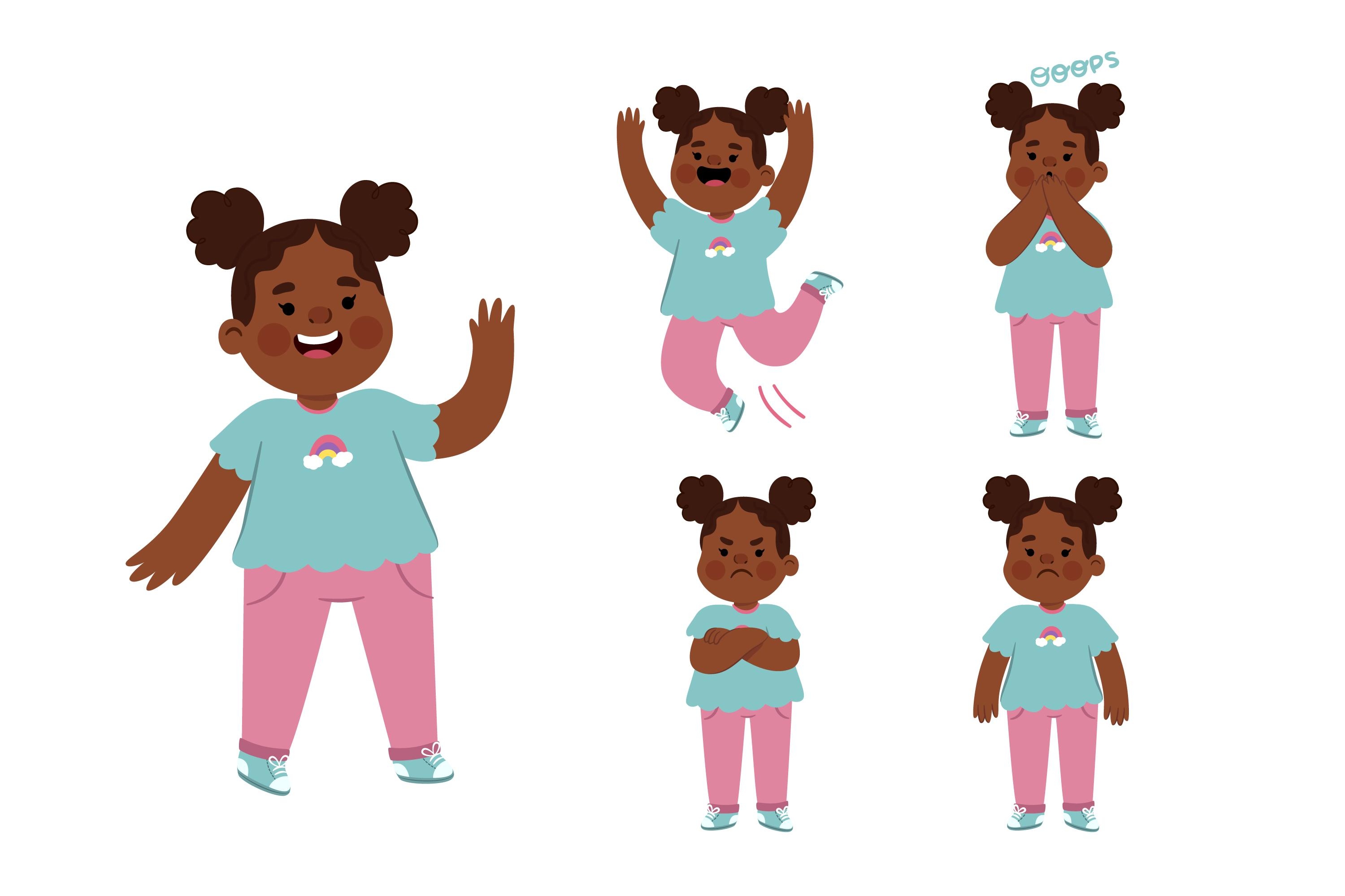 1 张 俏皮黝黑扎头发的卡通女宝宝素材