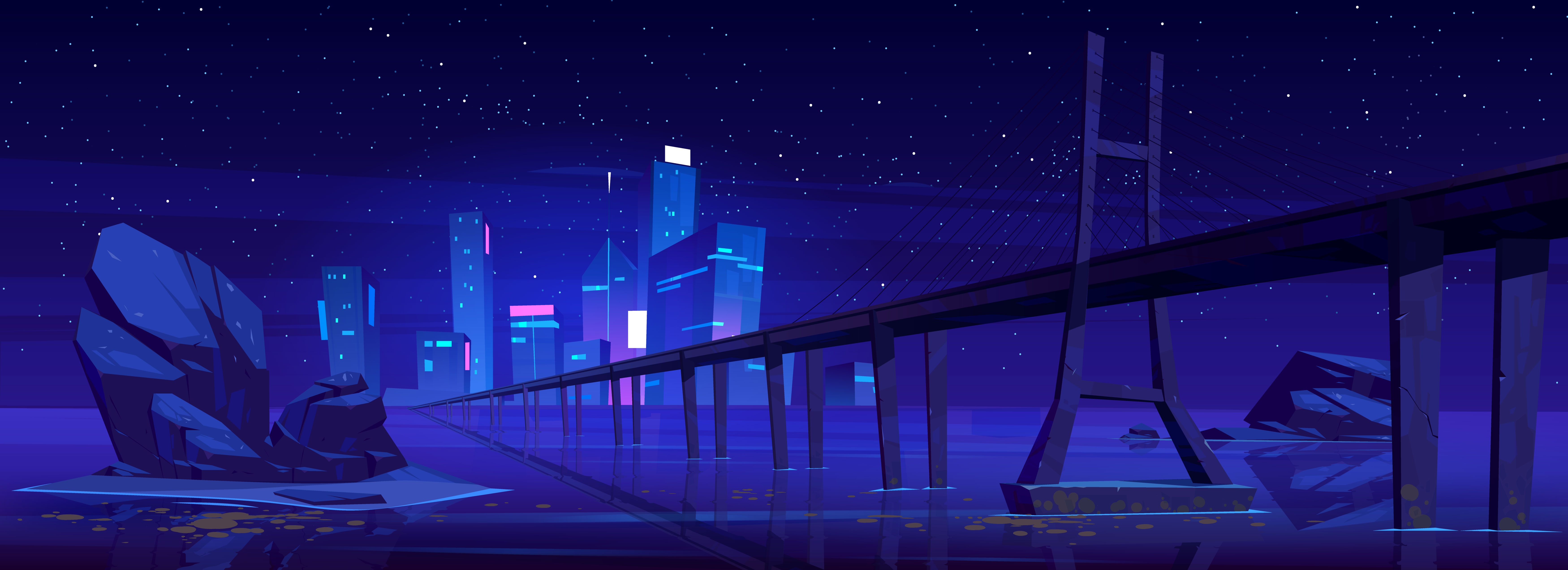 1 张 蓝紫色城市江面高架桥图