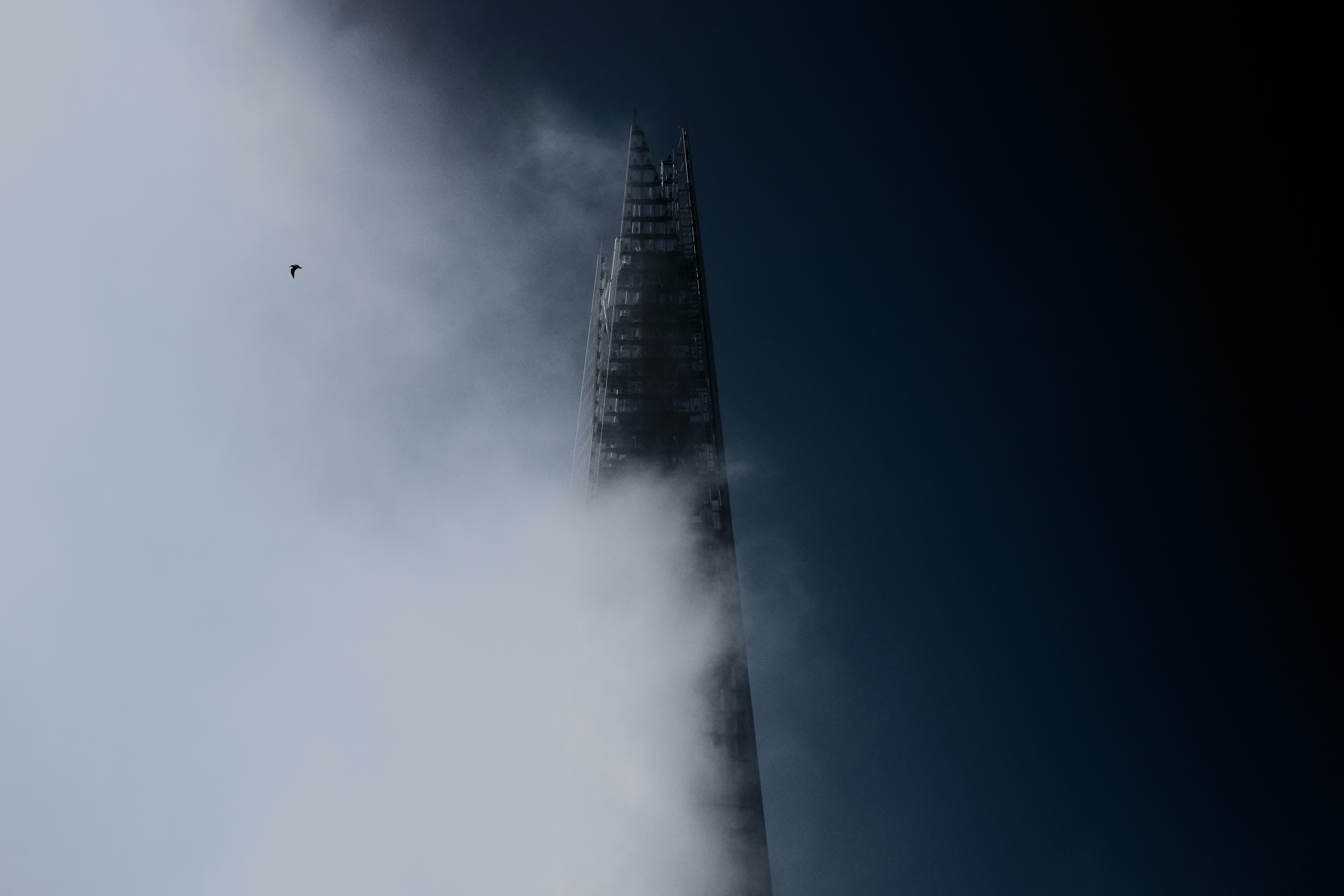 1 张 被白色浓雾遮盖的尖角高楼大厦