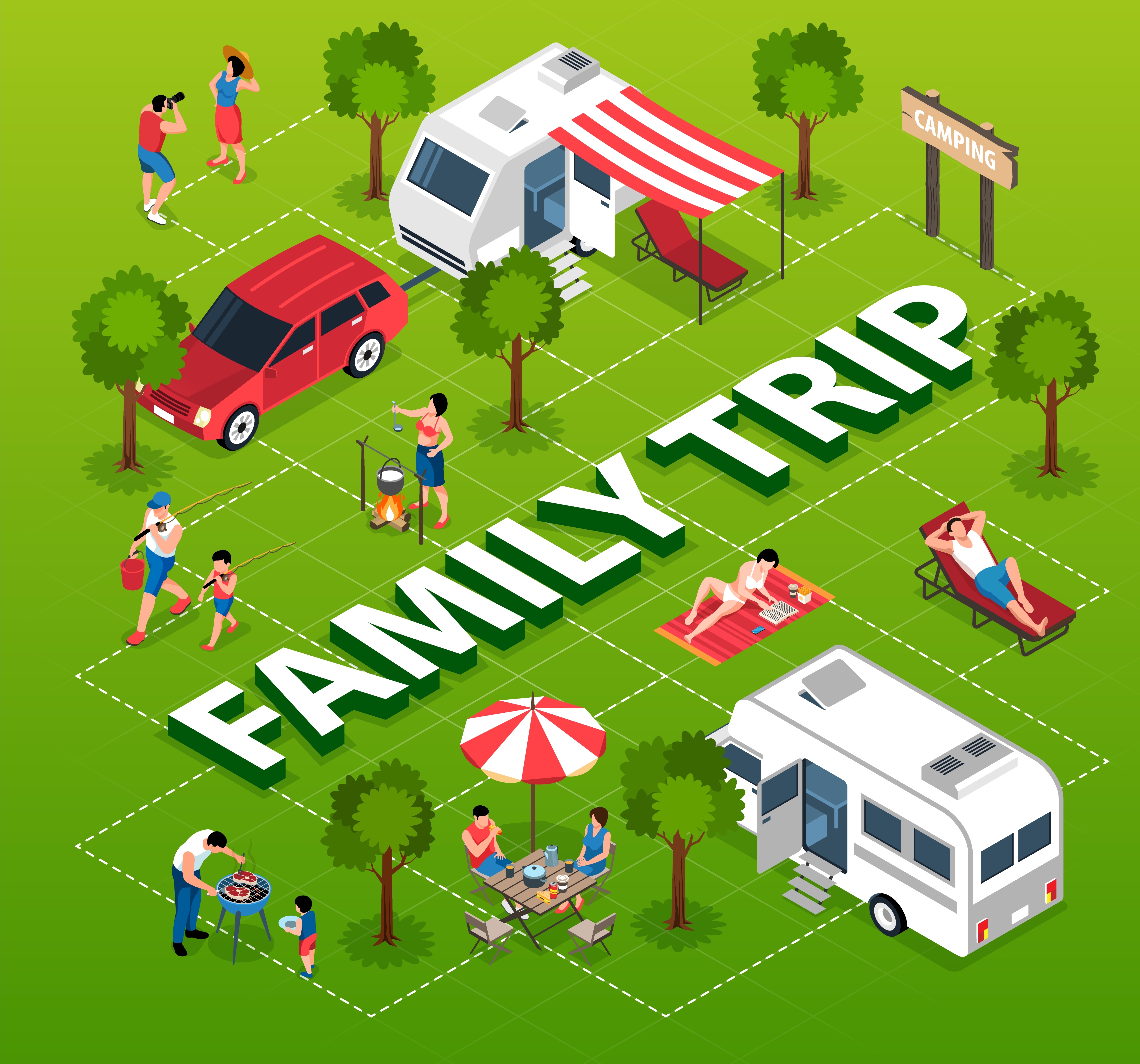 1 张 卡通开房车户外露营垂钓素材下载