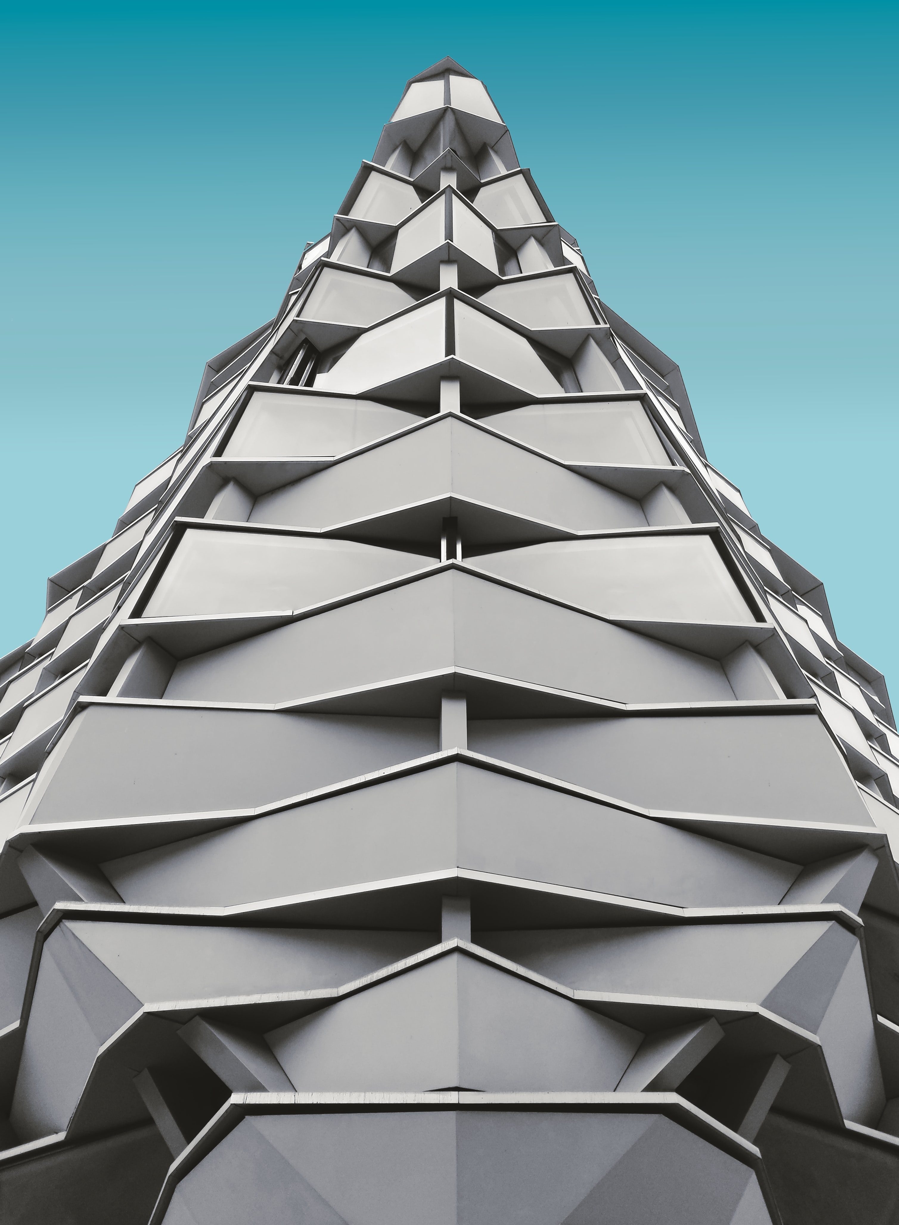 1 张 仰拍的几何造型建筑黑白图片