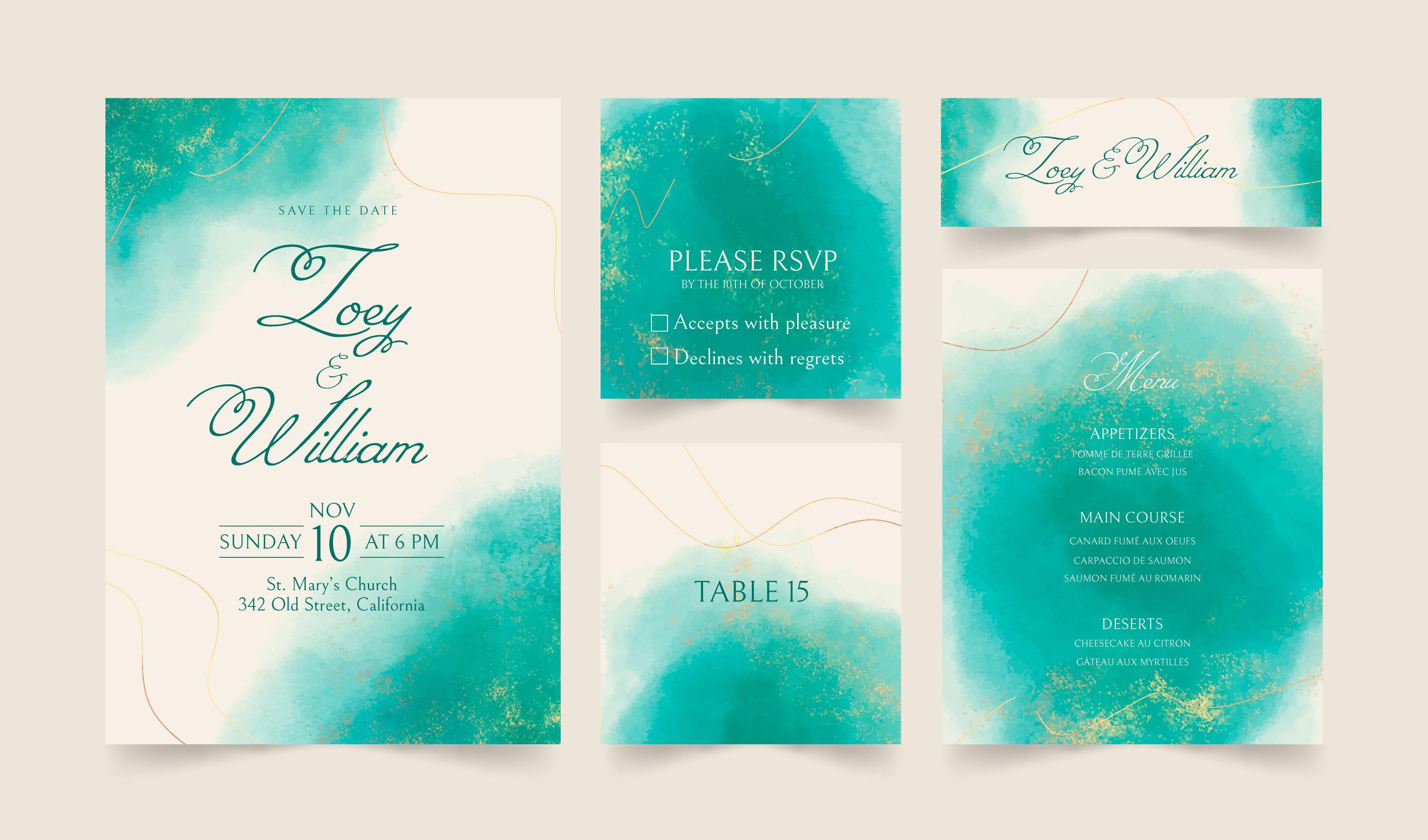 1 张 欧美金色豪华婚礼请柬设计套装