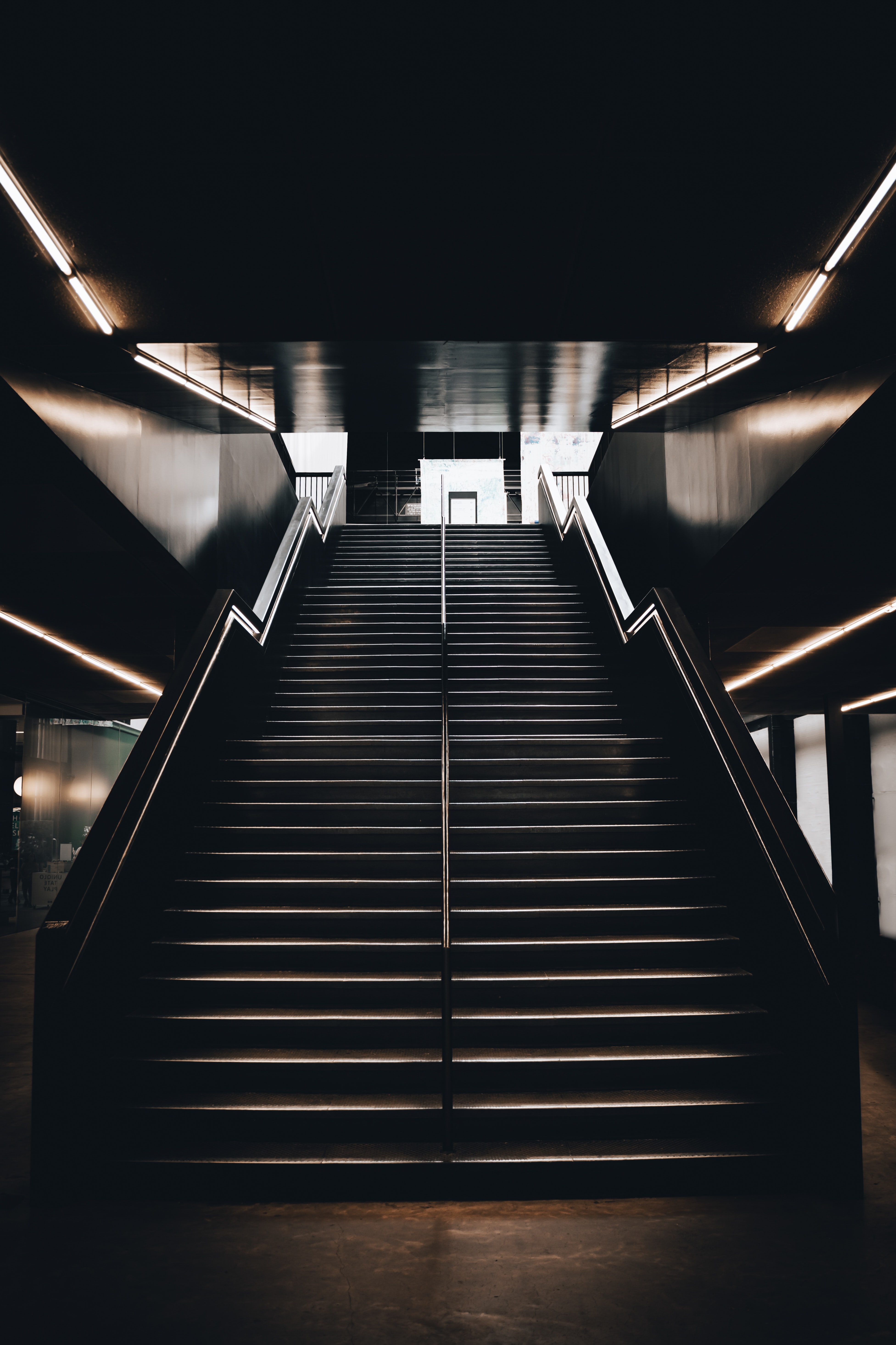 1 张 红色霓虹灯台阶过道