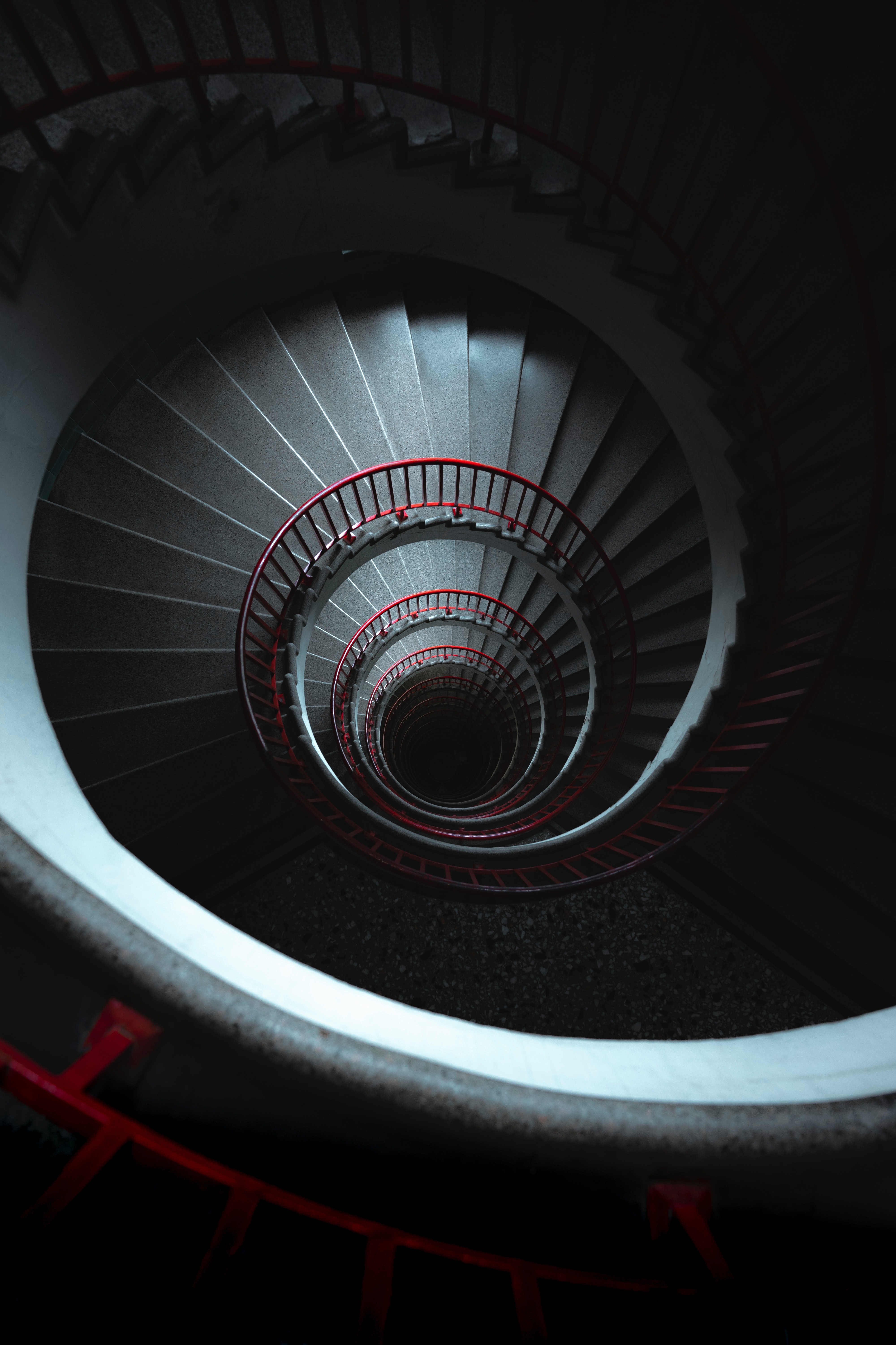 1 张 俯拍的圆形楼梯走道