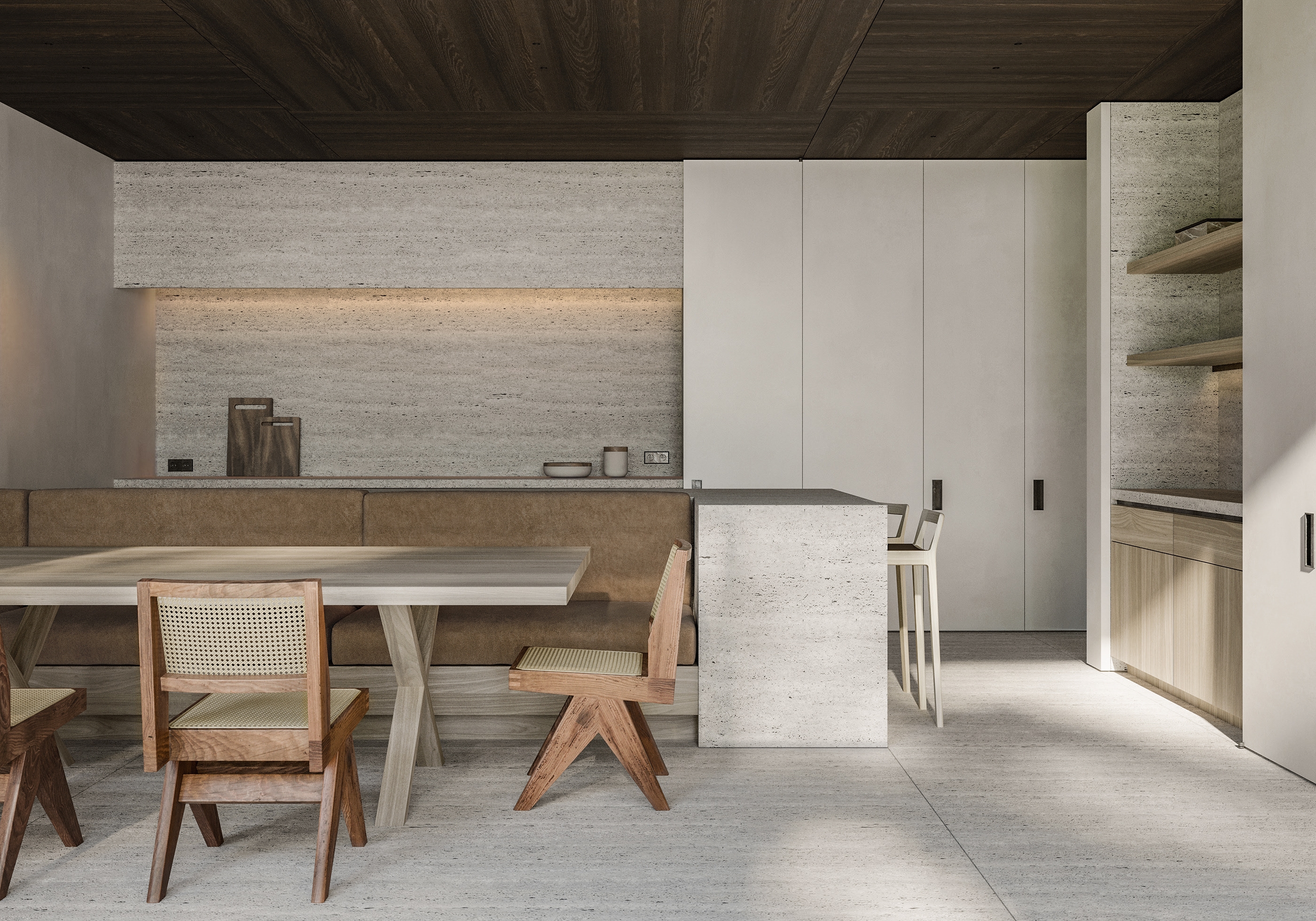 26 张 宁静的极简主义与有机奢华:来自波兰和沙特阿拉伯的2套现代中性内饰