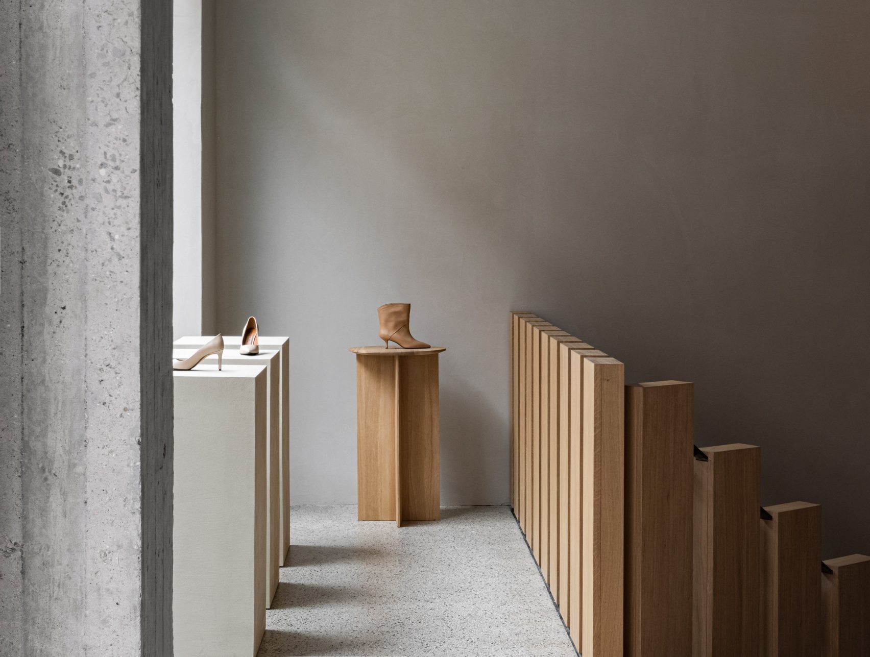 8 张 Notabene-哥本哈根采用混凝土、橡木和铝材的和谐鞋店