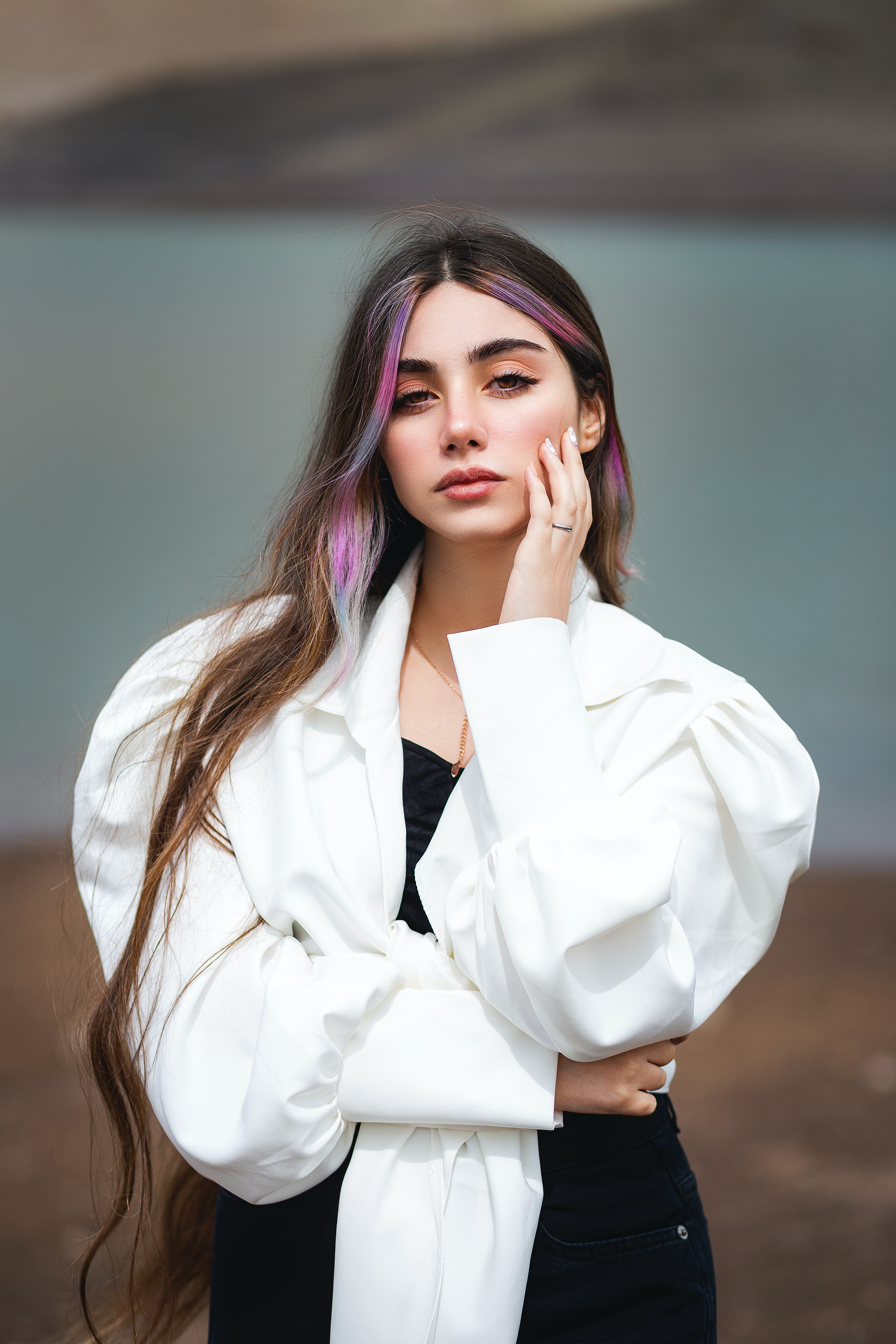 1 张 手摸脸部的长发女郎
