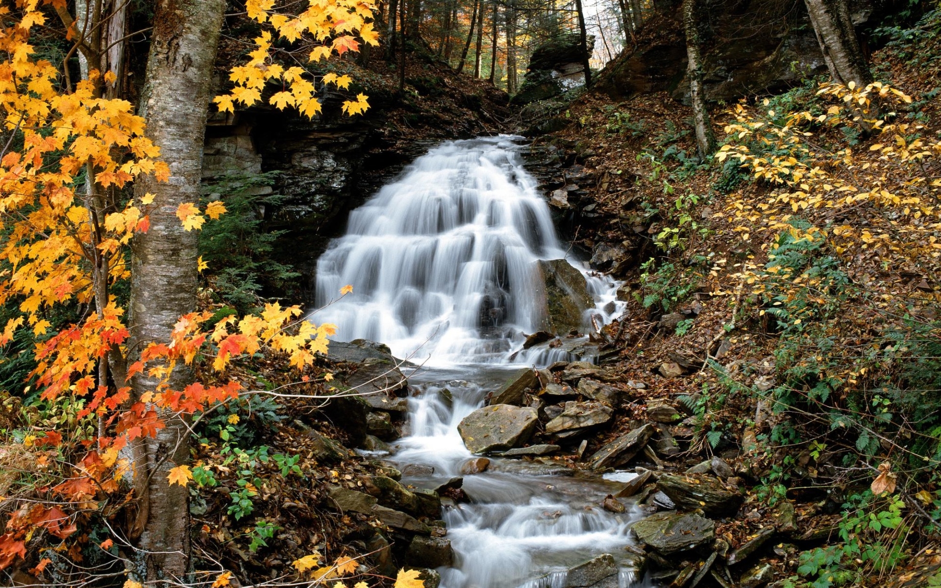 1 张 高清晰瀑布河树木岩石壁纸 : 946536