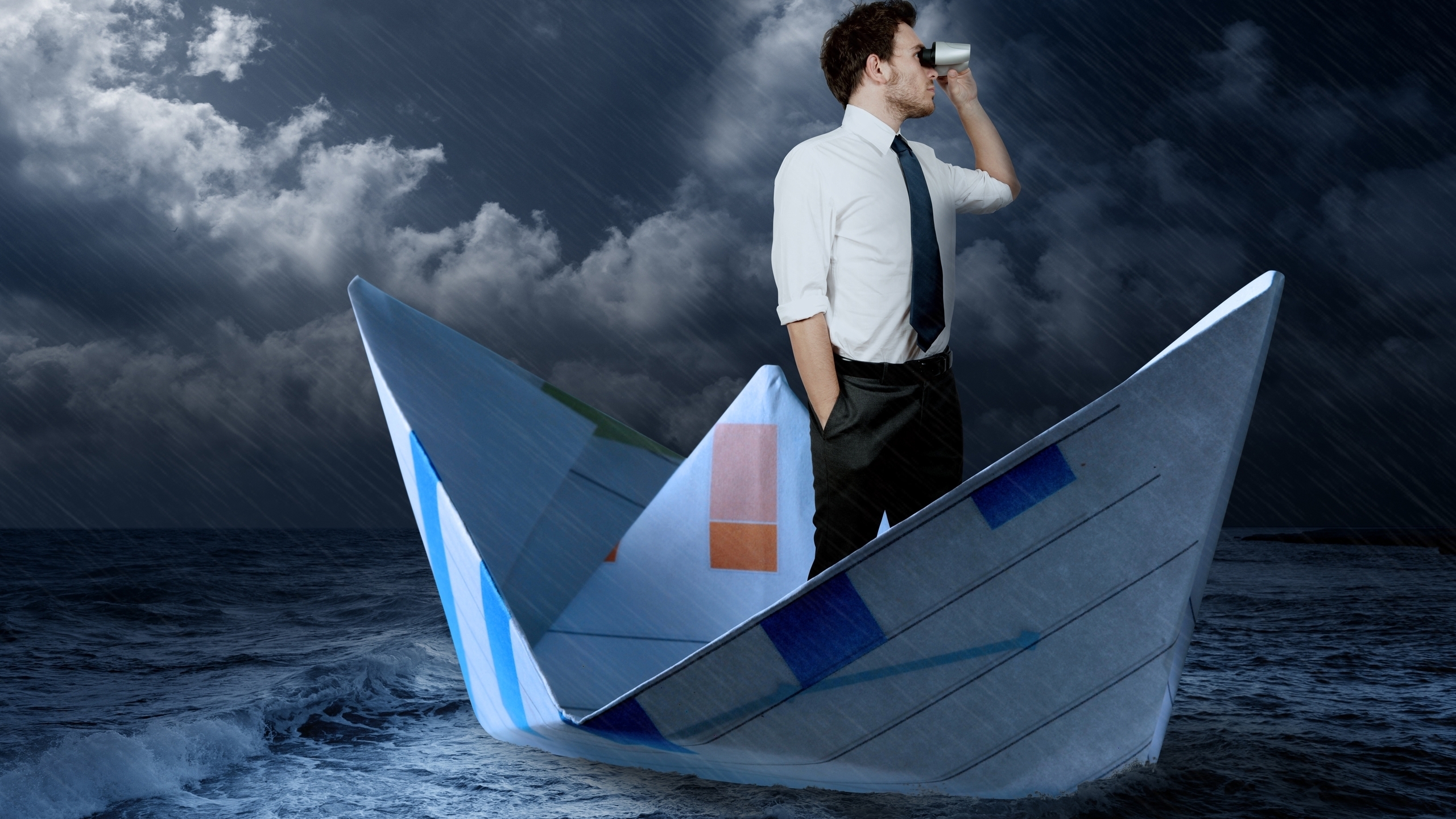 1 张 高清晰拿望远镜在纸船上的男人 : 918453
