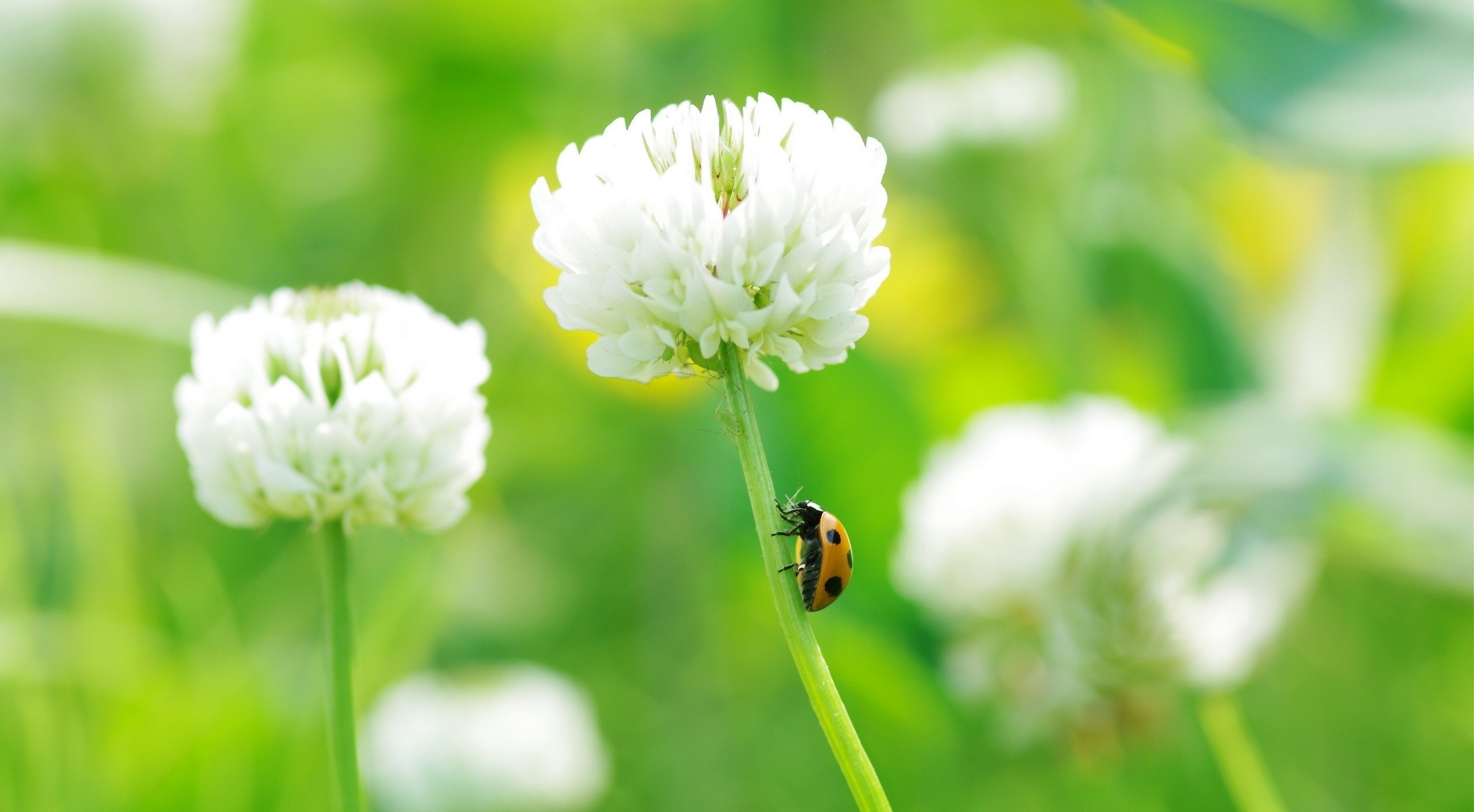 1 张 高清晰白色花瓣上的红色瓢虫壁纸 : 953285