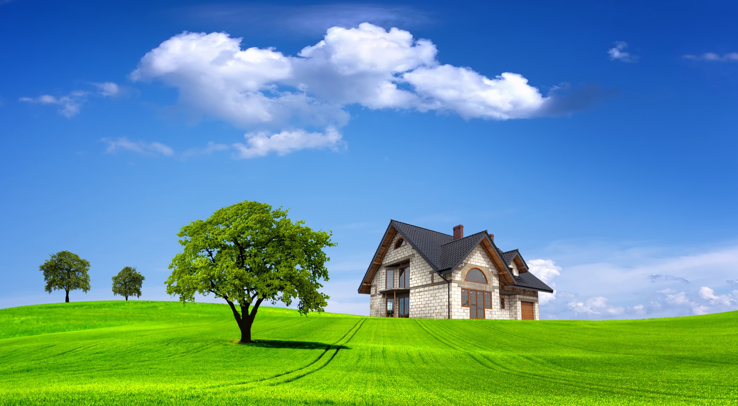 3 张 高清晰绿色草原+蓝天白云壁纸 : 910341
