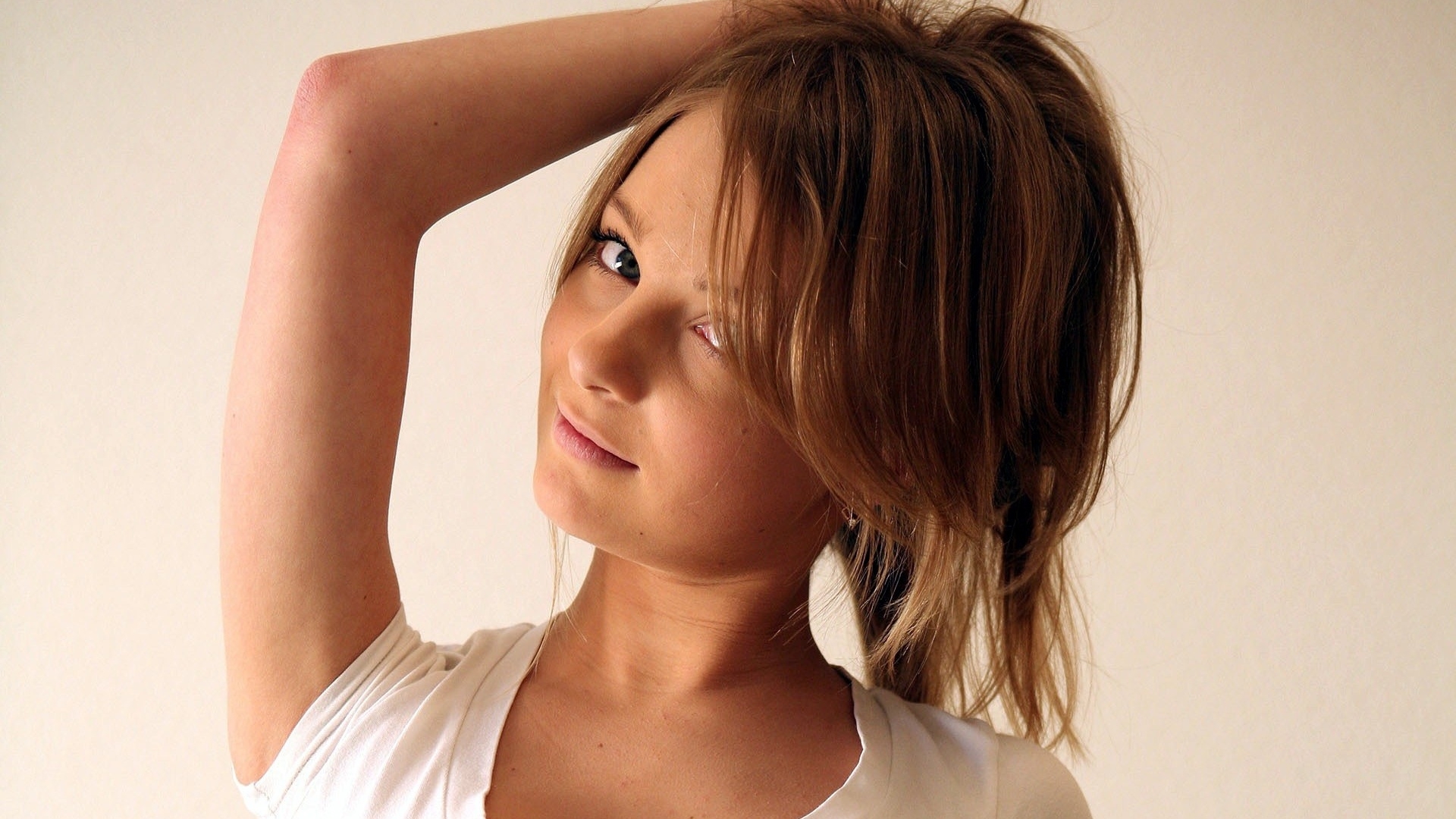 1 张 HD高清穿休闲T恤衫的金发美女壁纸 : 913584