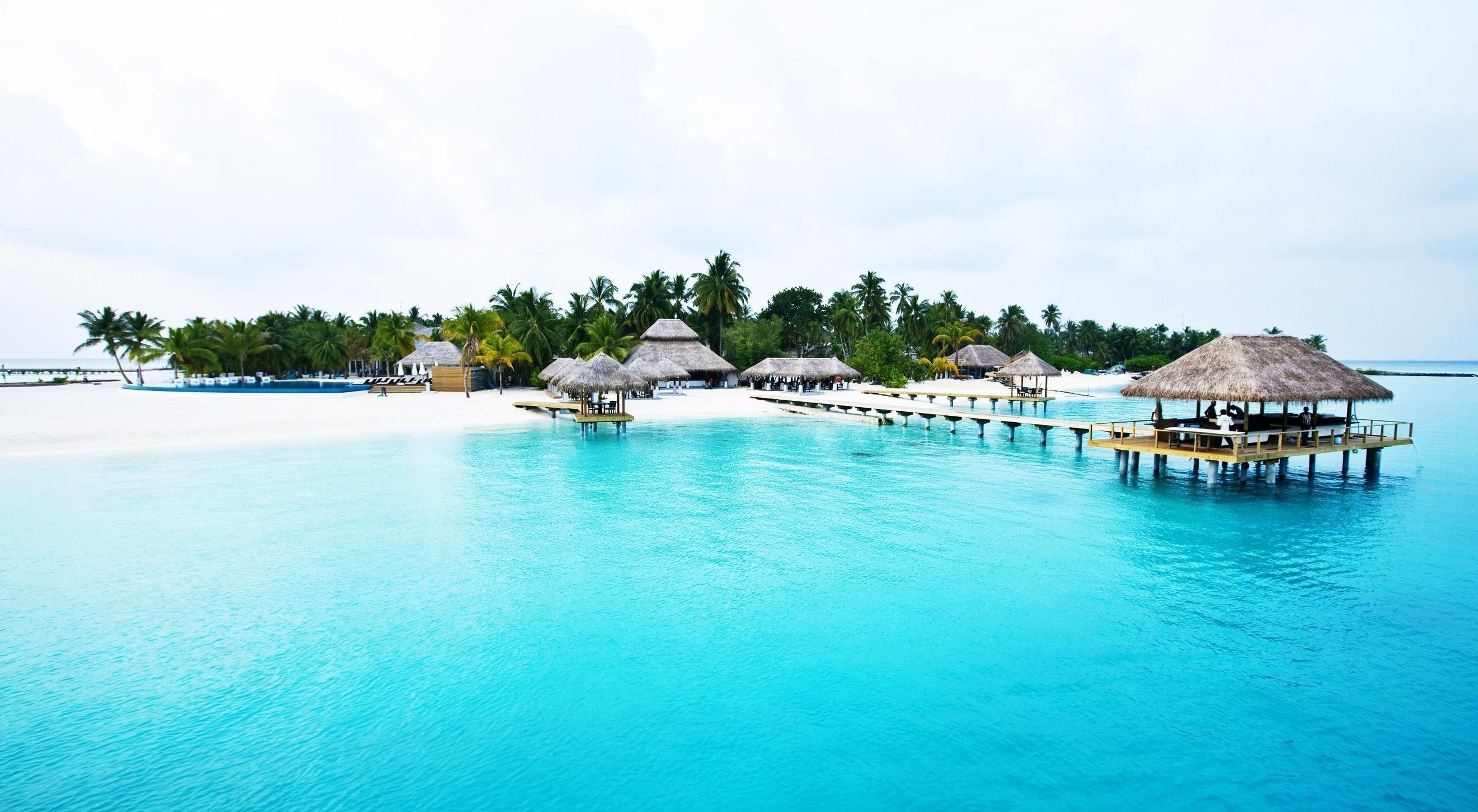1 张 马尔代夫蓝海度假草屋码头高清壁纸桌面下载 : 935260