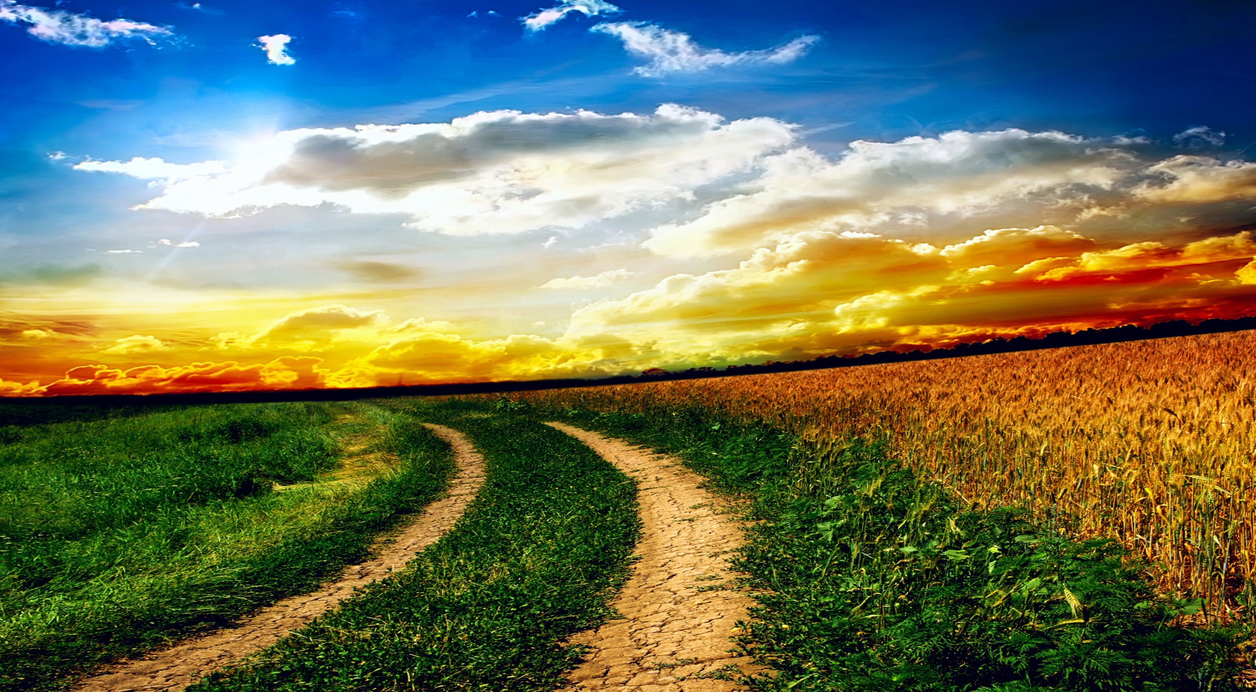 1 张 高清晰彩霞田园路壁纸 : 938974