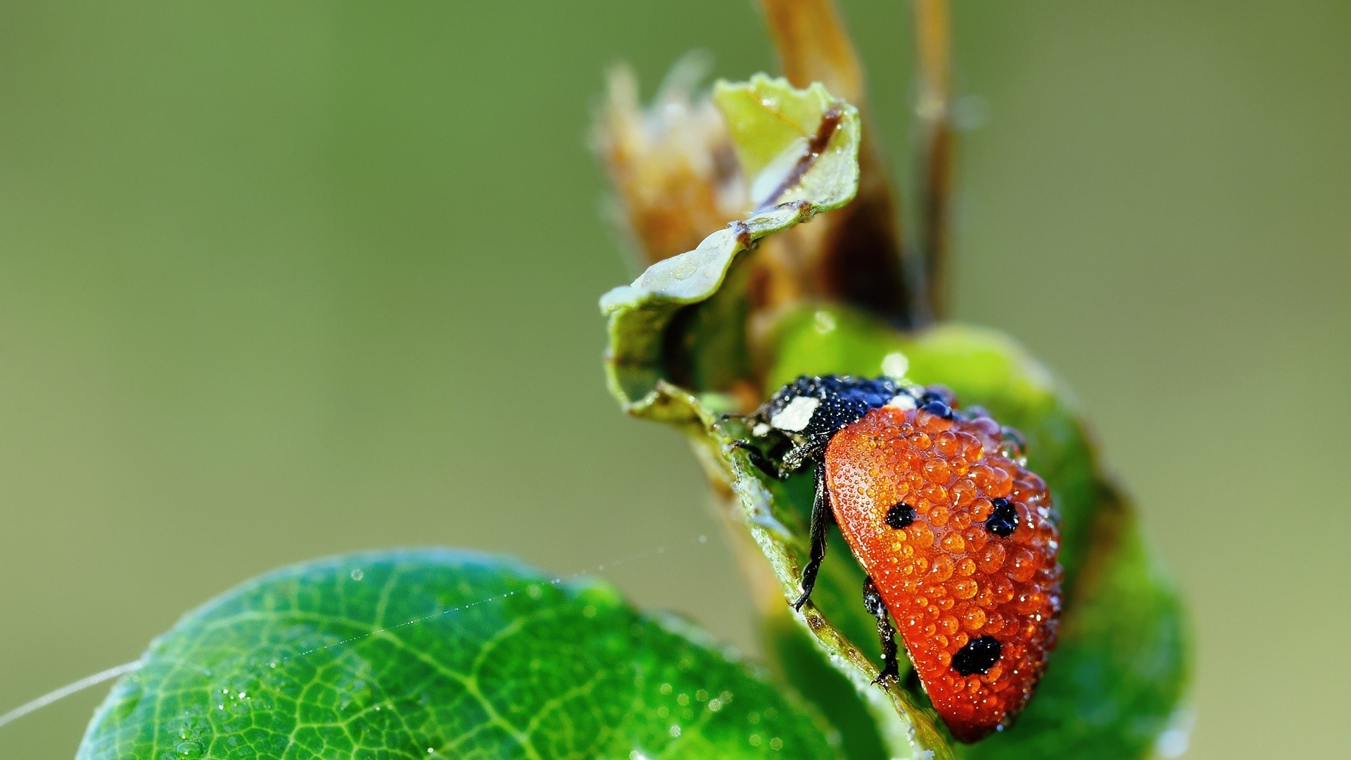 1 张 漂亮的带露珠红色甲壳虫瓢虫壁纸 : 912847