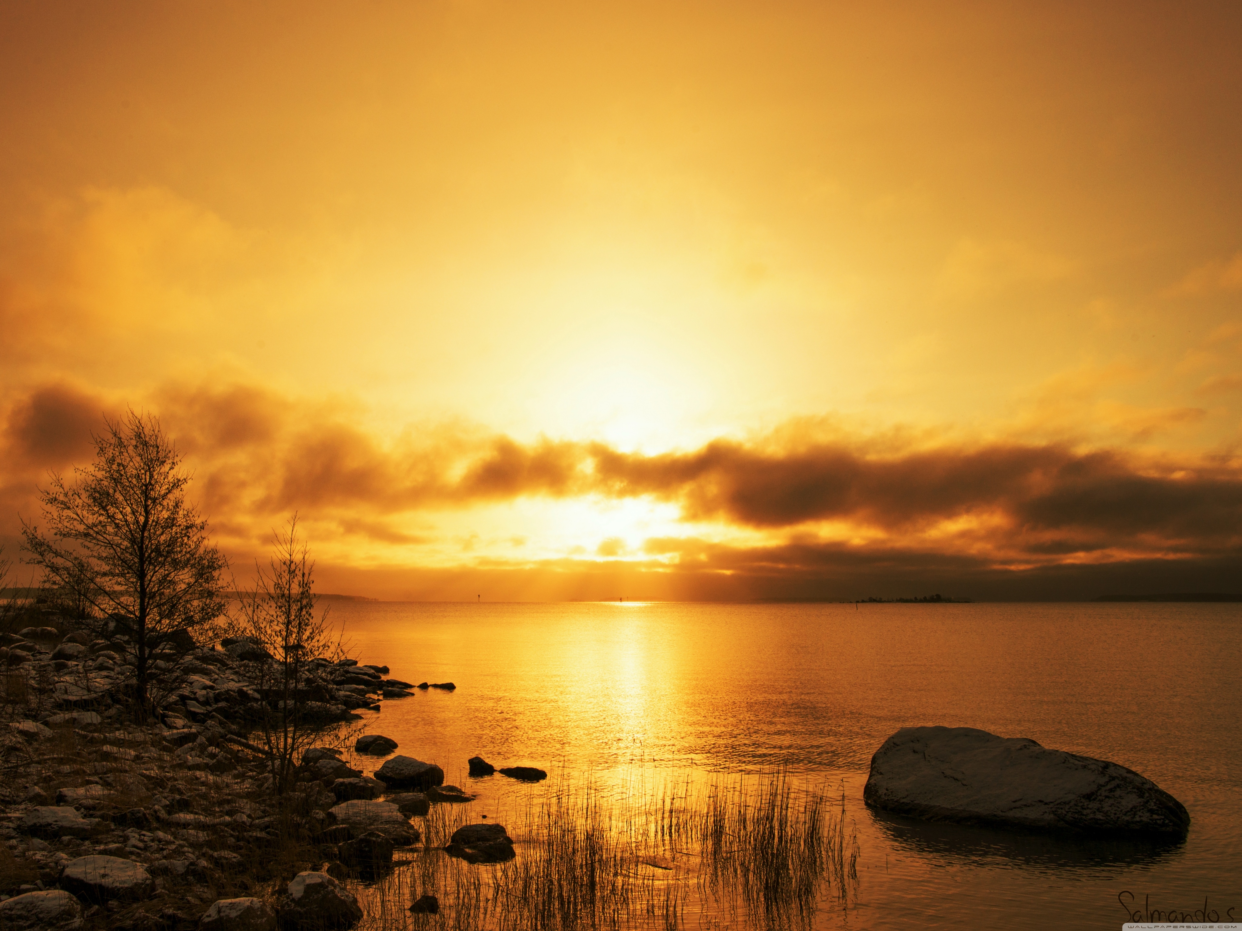 1 张 高清晰夕阳下的鹅卵石湖壁纸 : 947709