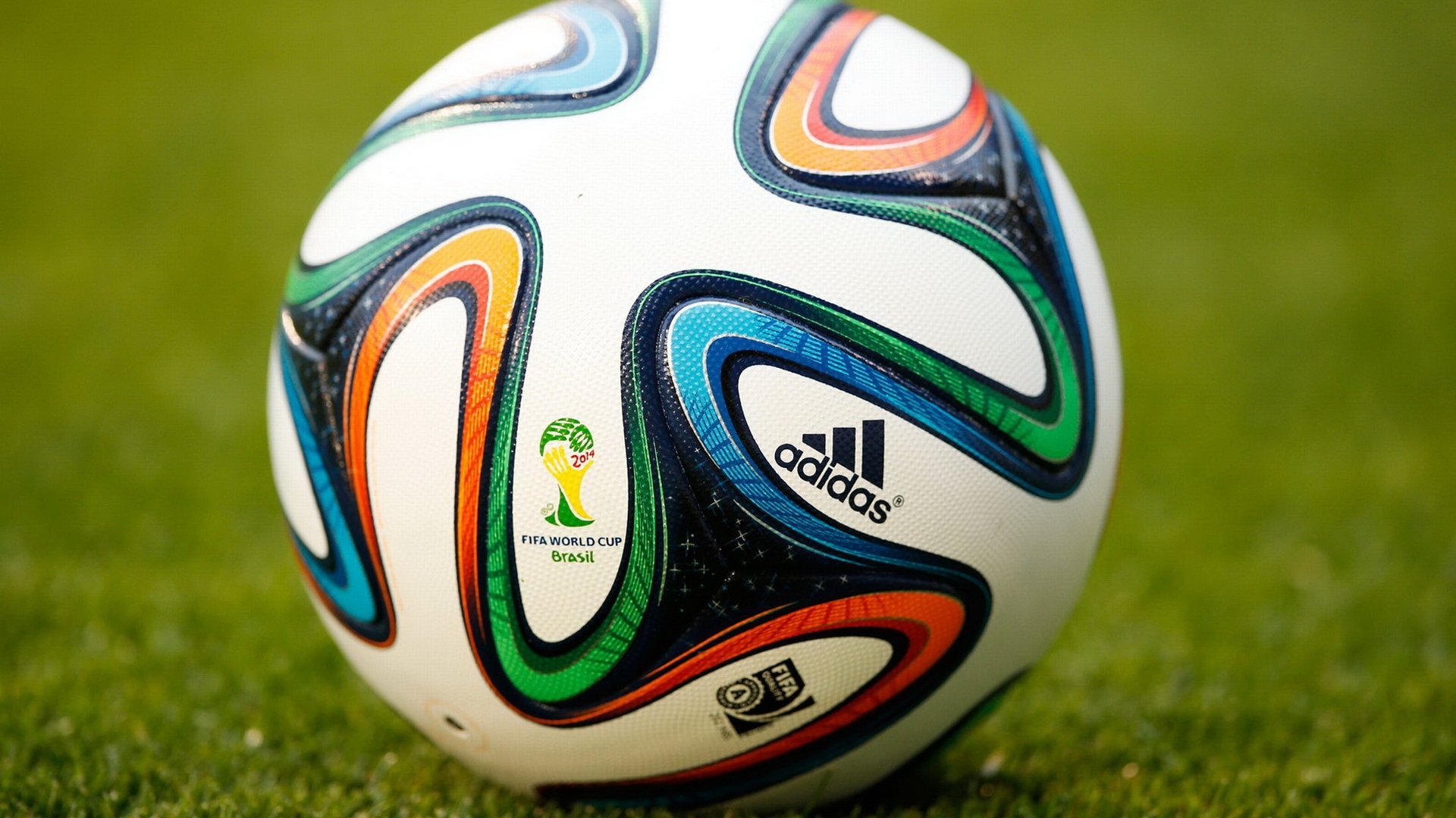 1 张 草坪上的足球-2014巴西世界杯比赛橙黑球高清壁纸下载 : 934397