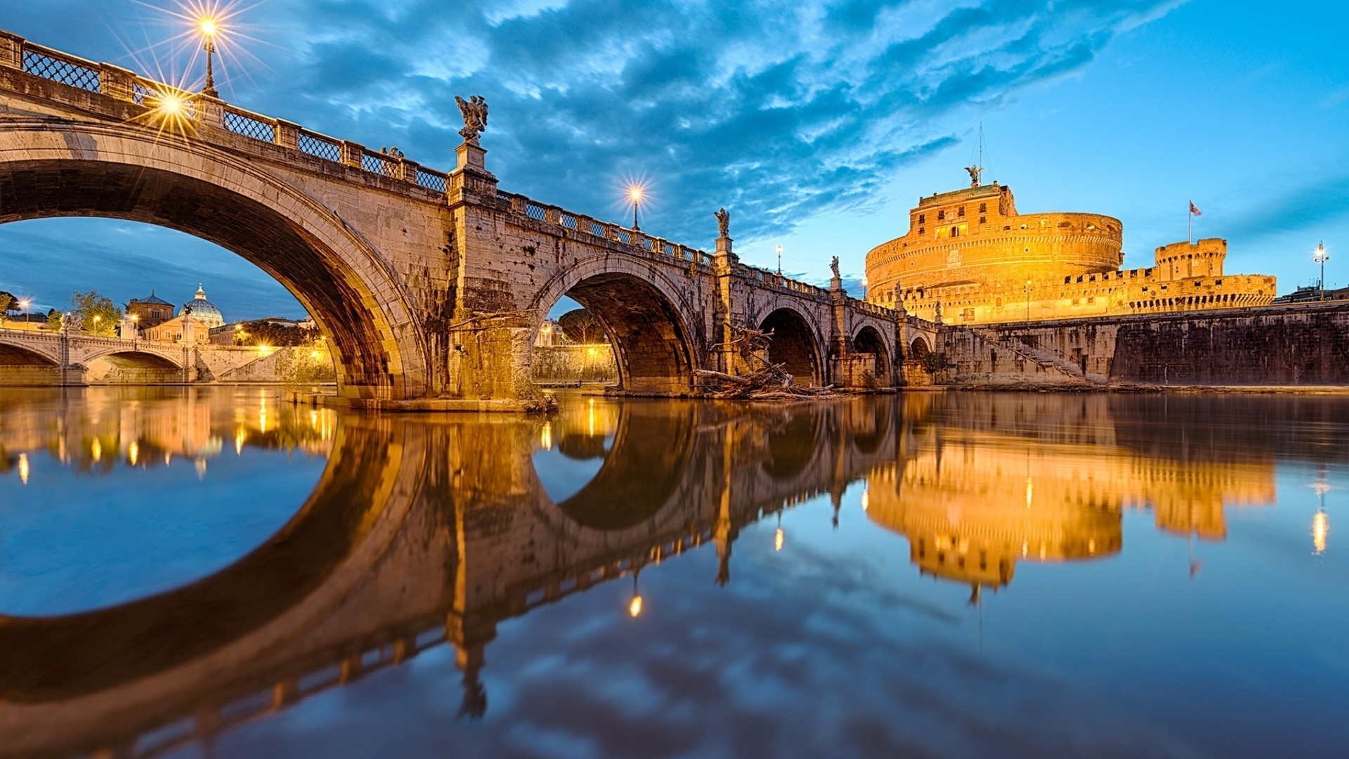 1 张 意大利跨河石拱桥夜景壁纸 : 932562