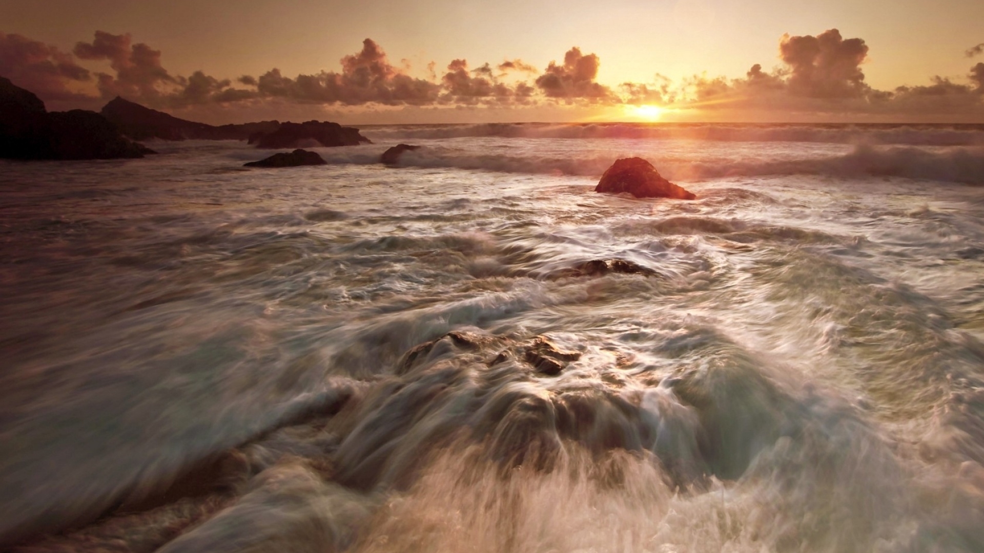 1 张 金色阳光下的海石海滩壁纸 : 949568