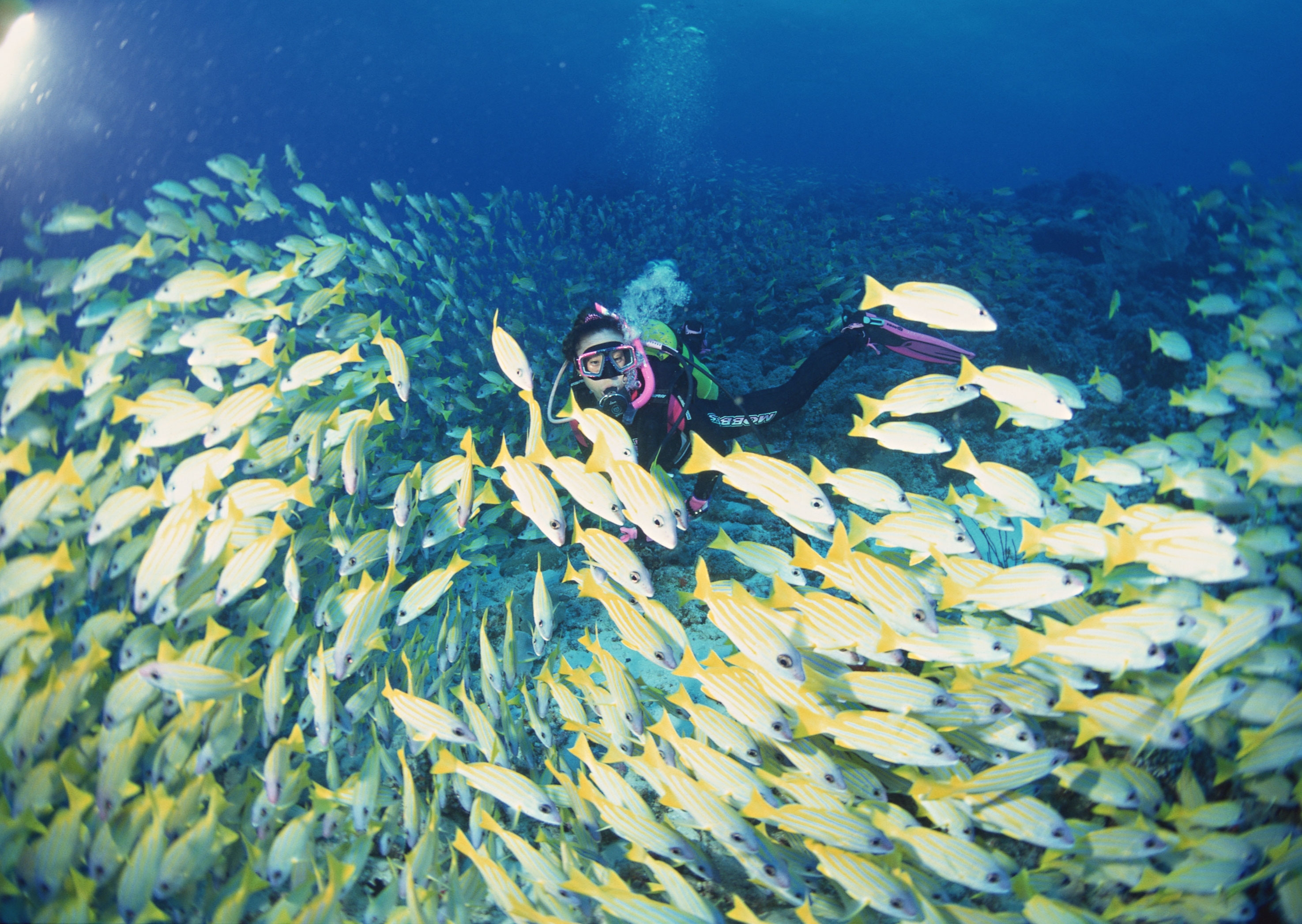 1 张 潜水员深海探秘群鱼壁纸 : 936359